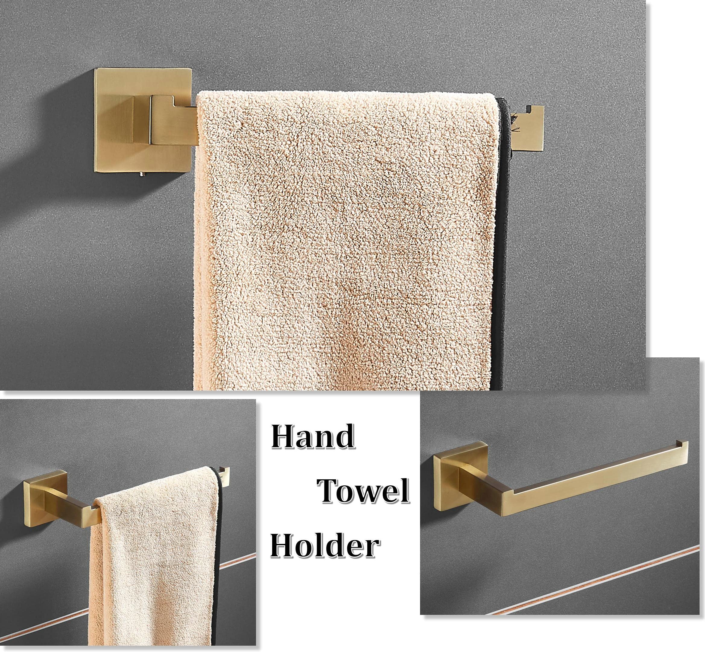 SHUNLI Handtuchhalter Set,Badezimmer Zubehör Set 5 Teiliges,Handtuchstange Handtuchring Toilettenpapierhalter Handtuchhaken X 2, Gebürstetes Gold/Edelstahl,Wandhandtuchhalter
