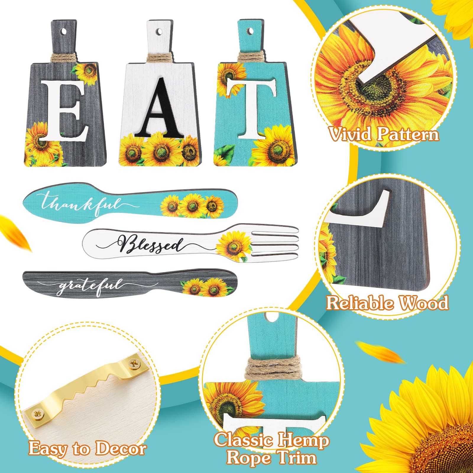 6 Teiliges Sonnenblumen Küchendekor Set Holzschild "essen