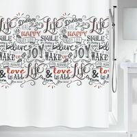 MSV Anti-Schimmel Textil Duschvorhang - Anti-Bakteriell Mit 12 Duschvorhangringen - Polyester, „Graphics" Schwarz, 180x200cm