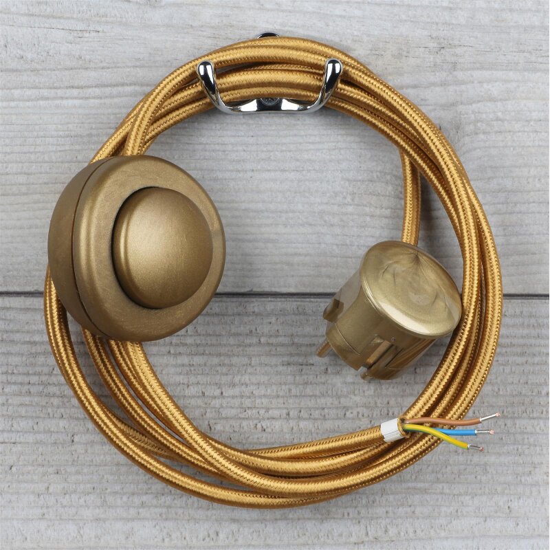 Länge von 50m) Technische Informationen: PVC Kabelleitung: H03VV-F 3x0,75mm² mit Textilmantel Farbe Textilmantel: gold Für Spannungen: 300/300V Bauart: Rundkabel, 3-adrig br, bl m Eine Textur erinnert an die Natur, die Einfachheit, neu erfunden um Raum Eurer Fantasie. Dank dem Stoffüberzug mit metallischen Reflexen jeden Ihrer Einrichtung verleiht mehr Licht in Ihrem Zuhause. Produkt für den Indoor Gebrauch , Made in Italy Textilkabel, Stoffkabel, Textilleitung,rund, Fuchsia 3x0,75mm² H03VV-F Die Qualität und die Fantasie vereinten Italiens in einem einzigen Produkt Textilkabel, Leitung Faser umflochten, rund, Goldgelb, 3x0,75 H03VV - Dieses Produkt enthält keine Lichtquelle - Glühbirne nicht enthalten NATURFASERN