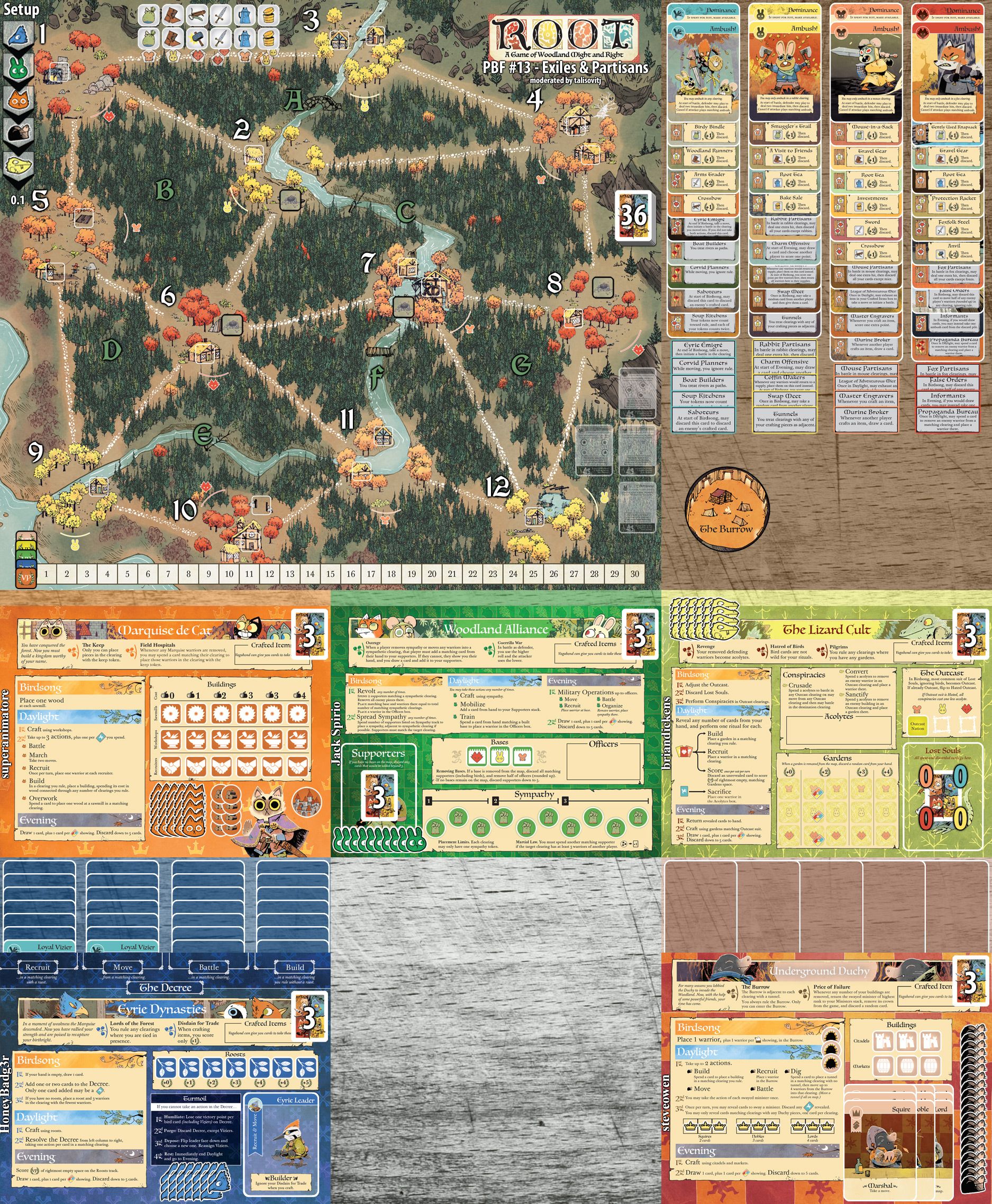 Mix things up with an alternative deck of cards. This deck replaces the old deck and contains a fresh roster of special powers for players to craft, many based on the factions themselves Root: The Exiles and Partisans Deck - EN Root Rollenspiel Root: The Exiles And Partisans Deck - EN, 9,95 Vagabond Pack What's in the box? Root: The Exiles and Partisans Deck - EN, Leder Games LED01004 Accessories. Not suitable for children under 3 years