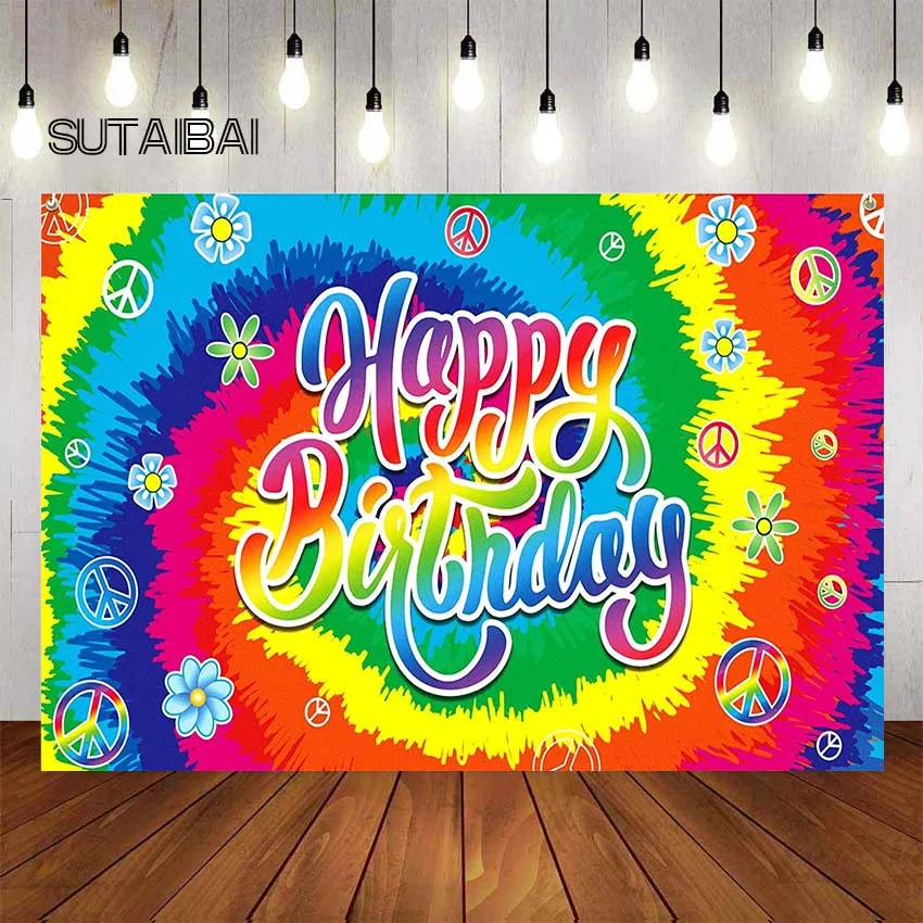 Dh Farbstoff Geburtstag Banner 60er Jahre Thema Glücklich Geburtstag Hintergrund Hippie Geburtstag Party Koration Geburtstag Jahrestag Partei Hintergrund