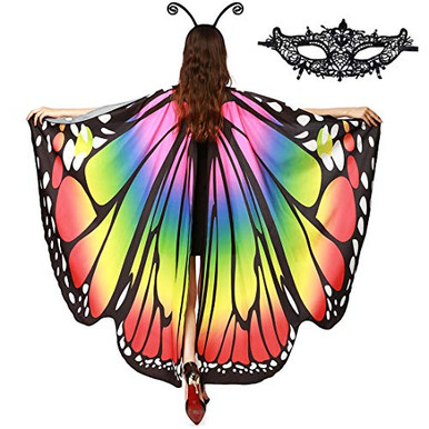 【Halloween-Kostüm】Halloween Schmetterlingsflügel Kostüm für Erwachsene, lässt Sie in den Feiertagen auffallen und wie eine Königin mit Schmetterlingsflügeln aussehen. Karneval Schmetterling Flügel Kostüm/Damen Halloween Kostüm/Halloween Kostüm Zub Material: strapazierfähiges und weiches Polyester. Lieferumfang: 1 x Schmetterlingsflügel-Umhang, 1 x Spitzenmaske und 1 x Antennen-Stirnband, das eine Halloween-Überraschung für Ihre Liebe ist. Größe: Schmetterlingsflügel für Damen: 167,6 x 139,7 cm., Spitzenmaske: 30 x 7,9 cm., Antennen-Stirnband: 24,9 x 17,8 cm 【Einzigartiges Design】 Die festlichen Schmetterlingsflügel für Erwachsene eignen sich für Anlässe wie Halloween-Cosplay und Geburtstagsfeiern, und das Schmetterlingskostüm für Erwachsene ist auch ein tolles Geschenk für Freunde. Fairy Wings Tibeha Butterfly Wings For Women Adults - Double-Sided Print Costume Elektrische Feenflügel Mit Led Lichtern Einfach zu tragen: Tragen Sie die Schmetterlingskostüme, der elastische Ring mit den Fingern durch den Schmetterlingsschal für Erwachsene kann frei getanzt werden, und die Festigkeit der Maske, des Klettverschlusses und des Antennenkopfes kann auch angepasst werden. Our butterfly wings costume with more vibrant colors and more realistic shapes, put it on and you will definitely stand out on Halloween! Material