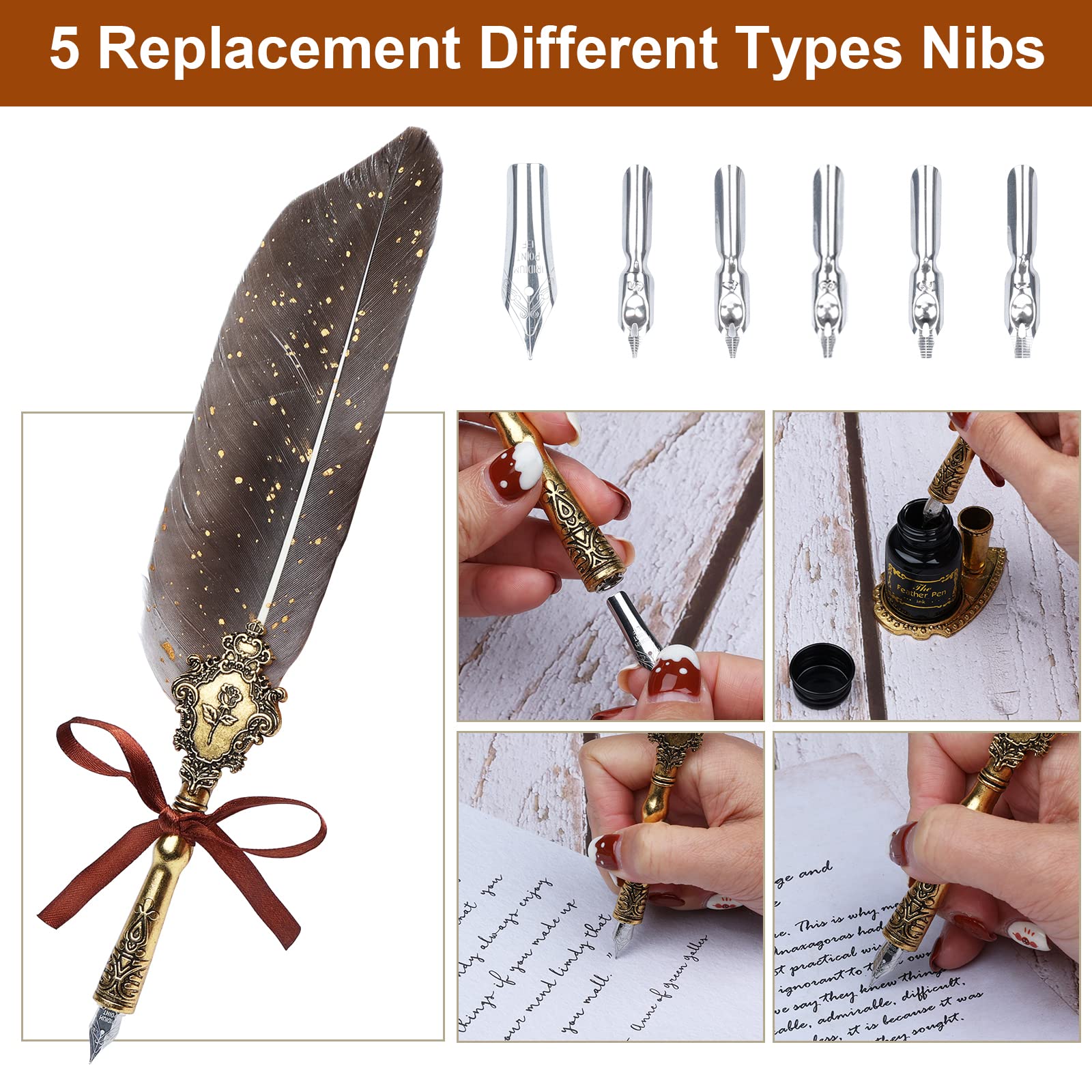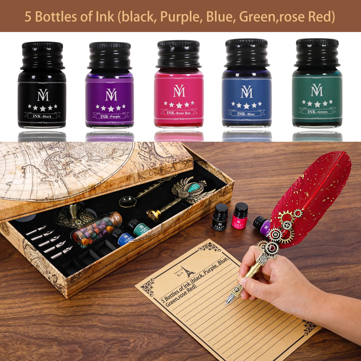 Feder Und Tinte Federkiel Kalligraphie Stift Set Mit Tinte Und Wachssiegelstempel, Schönes Geschenk Set Für Weihnachten, Grau Schreibfeder Set Innen, Enthusiasten und Schüler der Kalligraphie AOMAYLL Kalligraphie Feder,Vintage Federkiel Dip Quill Pen, with 17 Replacement Tips,Pen Holder,Ink,Seal Stamp-Perfektes für Anfänger und Profis Defekte Produkte können innerhalb von 90 Tagen ersetzt oder erstattet werden. Er vermeidet das Öffnen wichtiger Dokumente beim Dekorieren, Verzieren, Einladungen, Umschläge, Postkarten, Geschenkstempel und andere private Informationen Aifeiter Federstift Tinten Set, Federstift Tinten Set und Wachssiegel Stempel Set, Leder Notizbuch Set, Feder Kalligraphie Stift Set, Valentinstagsgeschenk, Geschenkauswahl, Kalligraphie Stift Set günstig auf Große Auswahl von Top Marken Das Set enthält einen Federkalligrafiestift mit einem Wachssiegel-Stempelset, alles verpackt in einem Steampunk-inspirierten Design. Geschenk der gehobenen Kunst Er erzeugt komplizierte Details und hinterlässt einen sauberen und schönen Abdruck. Der Stempel ist mit einem Zahnraduhr-Muster bedruckt. Jede Feder ist einzigartig und kann mit fünf unterschiedlich großen Federn verwendet werden, um verschiedene Schriftgrößen zu schreiben. Dieses Feder-Kalligraphie-Stift-Set ist sinnvoll. Das Federstift-Set beinhaltet: 1 x Federstift Das Federstift-Set beinhaltet: 1 x Federstift, 1 x Tinte (schwarz), 1 x Liebesstifthalter, 5 x austauschbare Edelstahlspitzen, 1 x Umschlag, 1 x Briefpapier, 1 x Lesezeichen, 1 x Zahnraddesign-Siegel, 1 x farbige Wachsperlen, 1 x weißes Wachs, 1 x Schmelzwachslöffel, 1 x Umschlagöffnungswerkzeug, 1 x mechanische Punk-Verpackungsbox Federn werden aus der ganzen Welt gesammelt und fallen natürlich ab. Ausgezeichnetes Schreiberlebnis: Es besteht aus natürlichen Federn. Tintenfeder – Die 15 besten Produkte i Vergleich - Ratgeber Der Stift verfügt über eine feine Federgröße und besteht aus Messingmaterial mit Goldrandfunktionen.