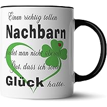 Tolle Geschenk Idee für Freunde, Nachbarn, Arbeitskollegen und Familie. Die Tasse mit dem richtigen Spruch, dem richtigen Motiv - für jeden sollte etwas passendes dabei sein. Sheepworld Tasse Tasse mit Herz-Henkel "Du. Ich. Läuft." Trendation - Bester Nachbar Geschenk für Nachbarn Tasse Geschenkidee Beste Nachbarn der Welt (Schwarz Nice-Presents-de Tasse Toller Nachbar Tasse mit Herz zu jedem Anlass für eine Gute Nachbarschaft. Da freut Sich Jede Freun, Nachbarin, oder Kollegin (Weiß) von Nice-Presents-de. Geschirr günstig online kaufen bei Möbel & Garten Die Tasse ist 96 mm hoch, 80 mm im Durchmesser und hat ein Fassungsvermögen von 300 ml. Der Druck ist beidseitig, sehr hochwertig und für viele Jahre Spülmaschinengeeignet. Regelmäßig wirst du bei uns neue und vor allem zeitgerechte Motive für Jung und Alt finden. ALLE unsere Tassen werden ausschließlich bei uns im Hause bedruckt ( Made in Germany ) Eine schöne weiße Oberfläche lässt den Druck auf der Tasse die verschiedene farbige Designs haben kann, wunderbar zur Geltung kommen. Unsere personalisierte Tasse mit Herz ist das perfekte Geschenk, um Ihrer lieben Nachbarin oder Nachbarn für ihre Freundlichkeit und Unterstützung zu danken. Mit einem herzlichen Design wird diese Tasse ihre Wertschätzung zum Ausdruck bringen und schöne Erinnerungen an Ihre Nachbarschaft teilen ALLE unsere Tassen werden ausschließlich bei uns im Hause bedruckt ( Made in Germany ) Farbe:Weiß