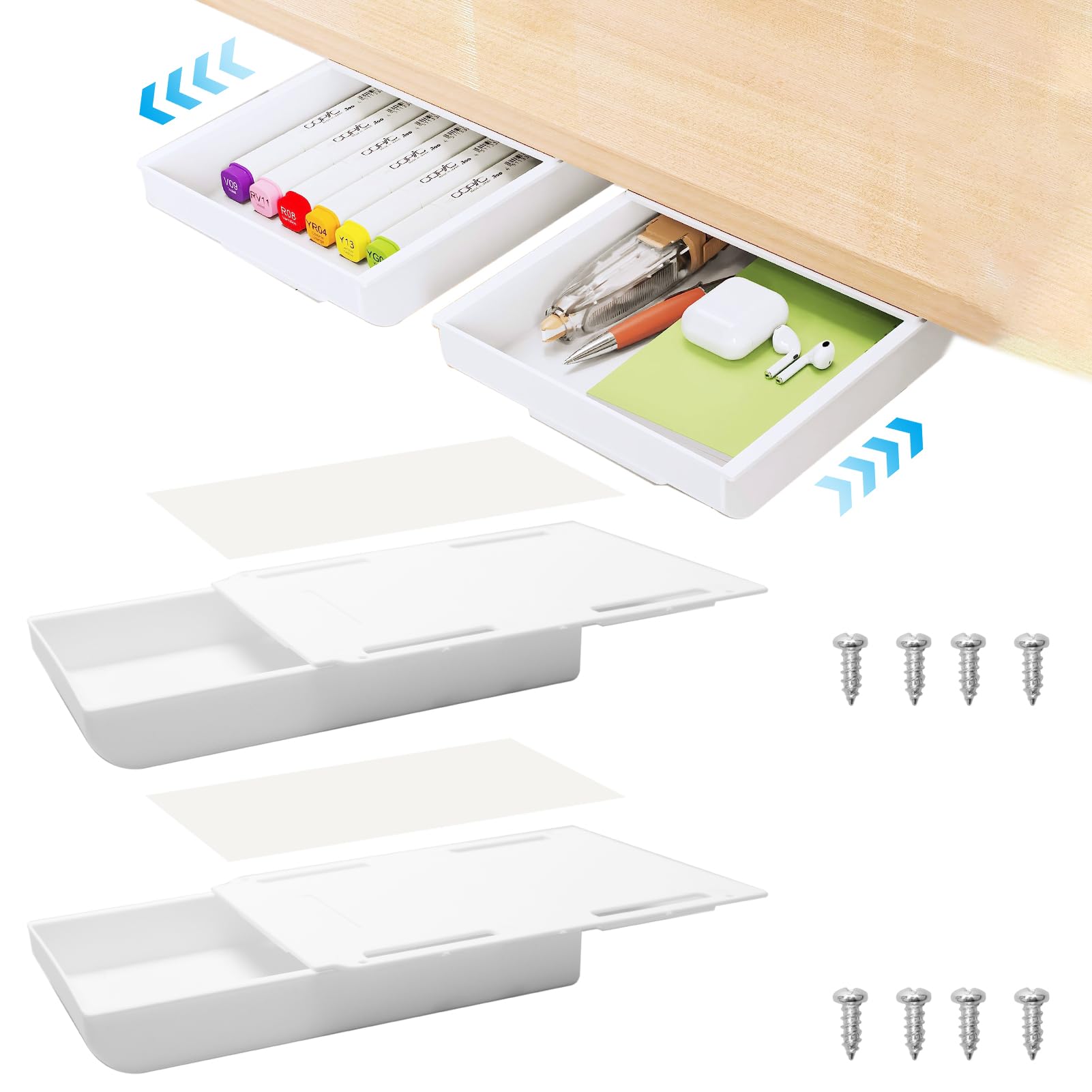 21,8x15,5x3,2cm,Untertisch-Aufbewahrung,Schubladen-Organizer,Selbstklebend,Unter Dem Tisch,Schublade, Stiftebox Mit Schrauben Zur Aufbewahrung Von Stiften, Bleistiften,Handys,Büro,Zuhause,Schule