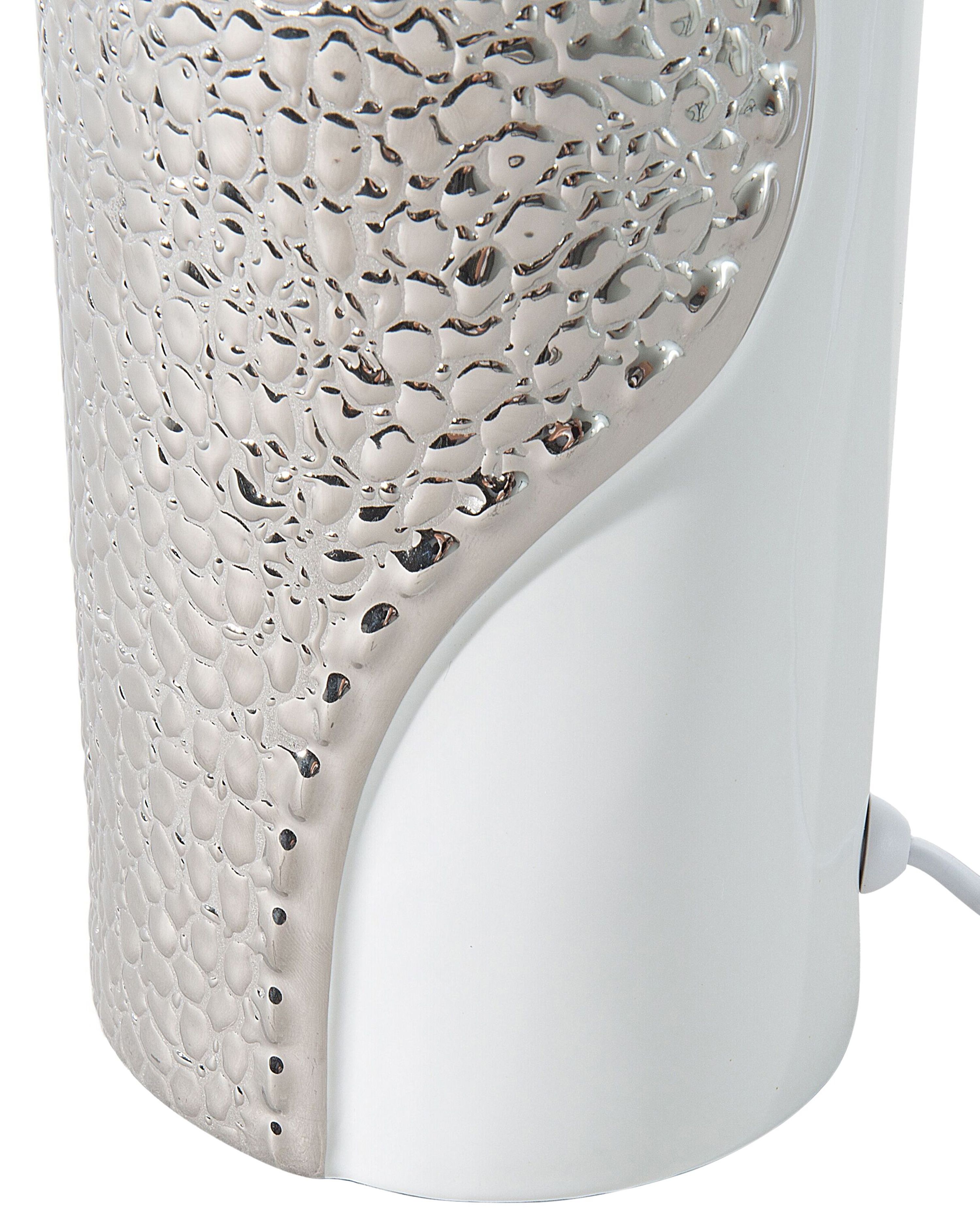 Dekorative Tischlampe mit einem hohen, zierlichen Fuß aus Porzellan Dekorative Nachttischlampe in glänzendem Weiß-Silber. Fassung E27 mit maximal 60W Tischlampe cremeweiß Keramik 37 cm Kegelform SADO Nachttischlampe Vintage Tischlampe BIJELA Porzellan Weiß / Blau Tischlampe Landhausstil Geeignet für: LED Leuchtmittel, Eco-Halogen Leuchtmittel, Energiesparleuchtmittel. Feuchte Stellen sofort trocken reiben. Details: Typ: Tischleuchten Stil: Glamourös Farbe: Weiß, Silber Material Typ: Stoff Material: Porzellan Zusätzliches Material: Kunstseide Material Lampenfuss: Porzellan Material Lampenschirm: Kunstseide Zusammenstellung: 100% Kunstseide Fassung: Max. Der elegante Fuß der Lampe hat ein auffälliges, abstraktes Muster aus glänzendem Weiß und schimmerndem Silber Zusatzinformationen: Diese Leuchte ist geeignet für Leuchtmittel der Energieklassen A bis G auf einer Skala von A (sehr effizient) bis G (weniger effizient). Tischlampe weiß 30 cm Blumenform MUSONE Im Studiolicht im Glamour-Stil Foto & Bild von Georg Reyher ᐅ Das Foto jetzt kostenlos bei anschauen & bewerten.