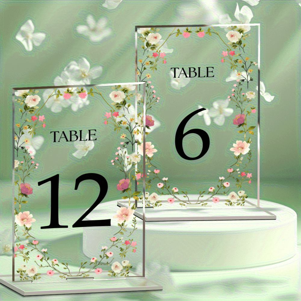 Tischnummern Hochzeit Set Für 1-30 Tische, Acryl Transparent Mit Präsizer Milchig-Weißer Lasergravur Inkl. Holz Standfuß