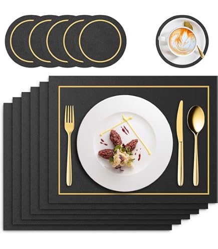 Sie schützen nicht nur Ihre Tische, sondern verleihen Ihrem Zuhause auch eine stilvolle Note. Keine Maschinenwäsche erforderlich. Hitzebeständig bis 80°C – ideal für den täglichen Gebrauch: Ob heiße Töpfe oder kalte Getränke – unsere Platzdeckchen sind hitzebeständig, abriebfest und halten jeder Belastung stand. Dank ihrer wasser- und ölabweisenden Eigenschaften schützen sie Ihre Tische zuverlässig vor Flecken und Kratzern. Premium-Kantenverarbeitung: Dank der hochwertigen, versiegelten Kantenverarbeitung sind unsere Platzdeckchen besonders langlebig. 4er Set aus PU-Leder - Platzsets Abwaschbar - 43x30cm... Abwaschbare Platzset Für Esstisch Myir JUN Tischsets Abwaschbar Leder Und Untersetzer, Doppelseitigen Platzset 4er Set Rutschfest Platzdeckchen Leder Kunstleder Tischset (Grau Terrakotta, 4er Set Abwaschbare Tischsets Blitzschnell sauber – wasser- ölabweisend: Einfach abwischen, und schon strahlen Ihre Platzdeckchen wie neu! Sie schützen Ihren Tisch effektiv vor Kratzern und Flecken und verlängern so die Lebensdauer Ihrer Tischoberfläche. Hochwertiges, umweltfreundliches Material: Ocves Platzdeckchen bestehen aus robustem und langlebigem PU-Leder, das umweltfreundlich und praktisch ist. Mit einem feuchten Tuch abwischen oder mit fließendem Wasser abspülen oder mit einer Bürste reinigen und an einem kühlen Ort trocknen. Zusätzlich bieten wir eine 1-jährige Garantie ab Kaufdatum (ausgenommen unsachgemäße Nutzung oder normale Abnutzung). Ocves Tischset schmücken und schützen den Tisch jeden Tag, die hochwertigen und pflegeleichten Platzsets aus Leder ergänzen Ihre Möbel perfekt. Spezifikation: Material: 100 % PU-Leder Maximale Wärmebegrenzung: bis zu 80 °C. Wenn Sie aus irgendeinem Grund nicht vollständig mit Ihrem Kauf zufrieden sind, senden Sie uns bitte eine E-Mail. Größe: 43 x 30 cm (Tischsets), 10 x 10 cm (Untersetzer). Ein perfekter Begleiter für Küche, Esszimmer und Büro. Hochwertiges, umweltfreundliches Material: Ocves Platzdeckchen bestehen aus robustem und langlebigem PU-Leder, das umweltfreundlich und praktisch ist