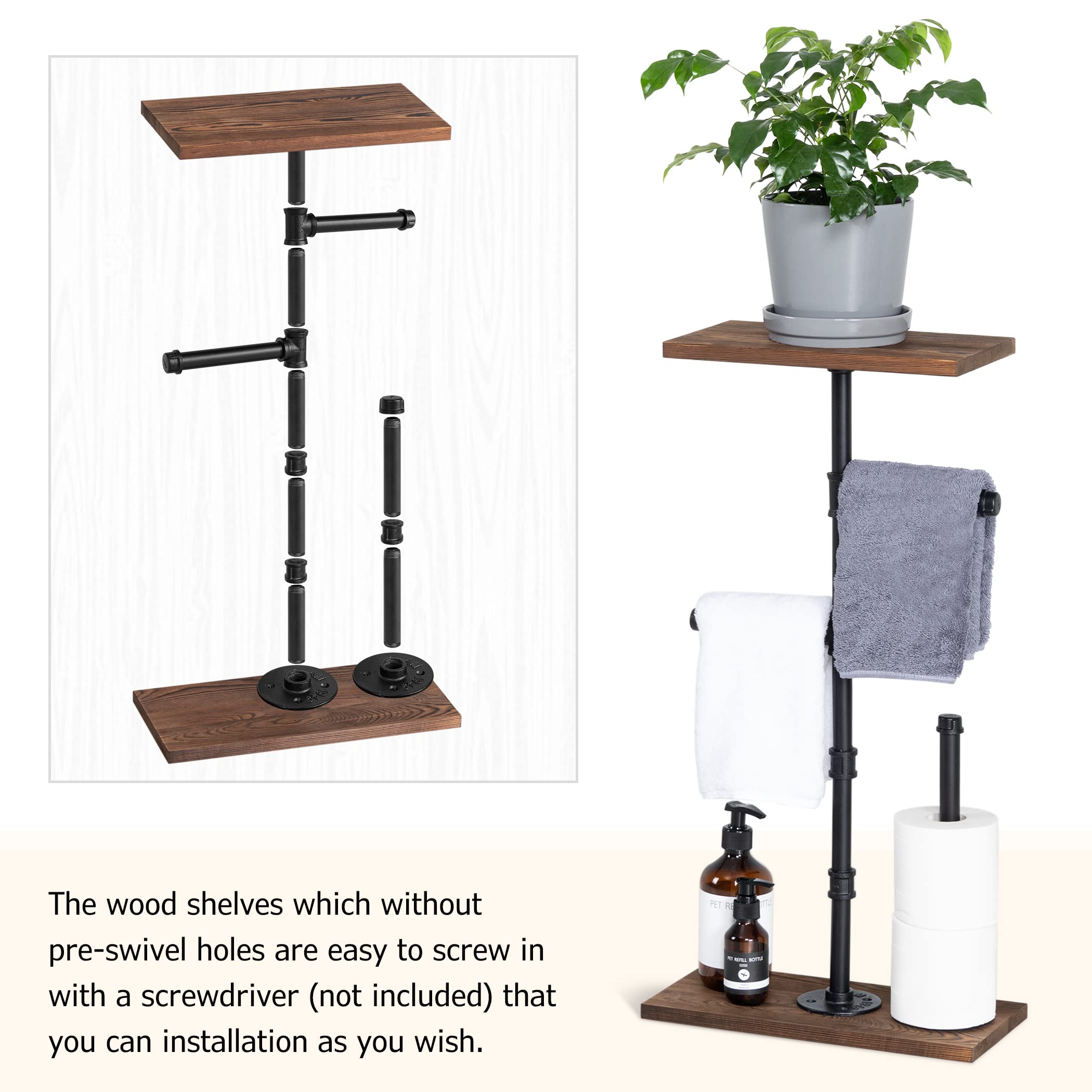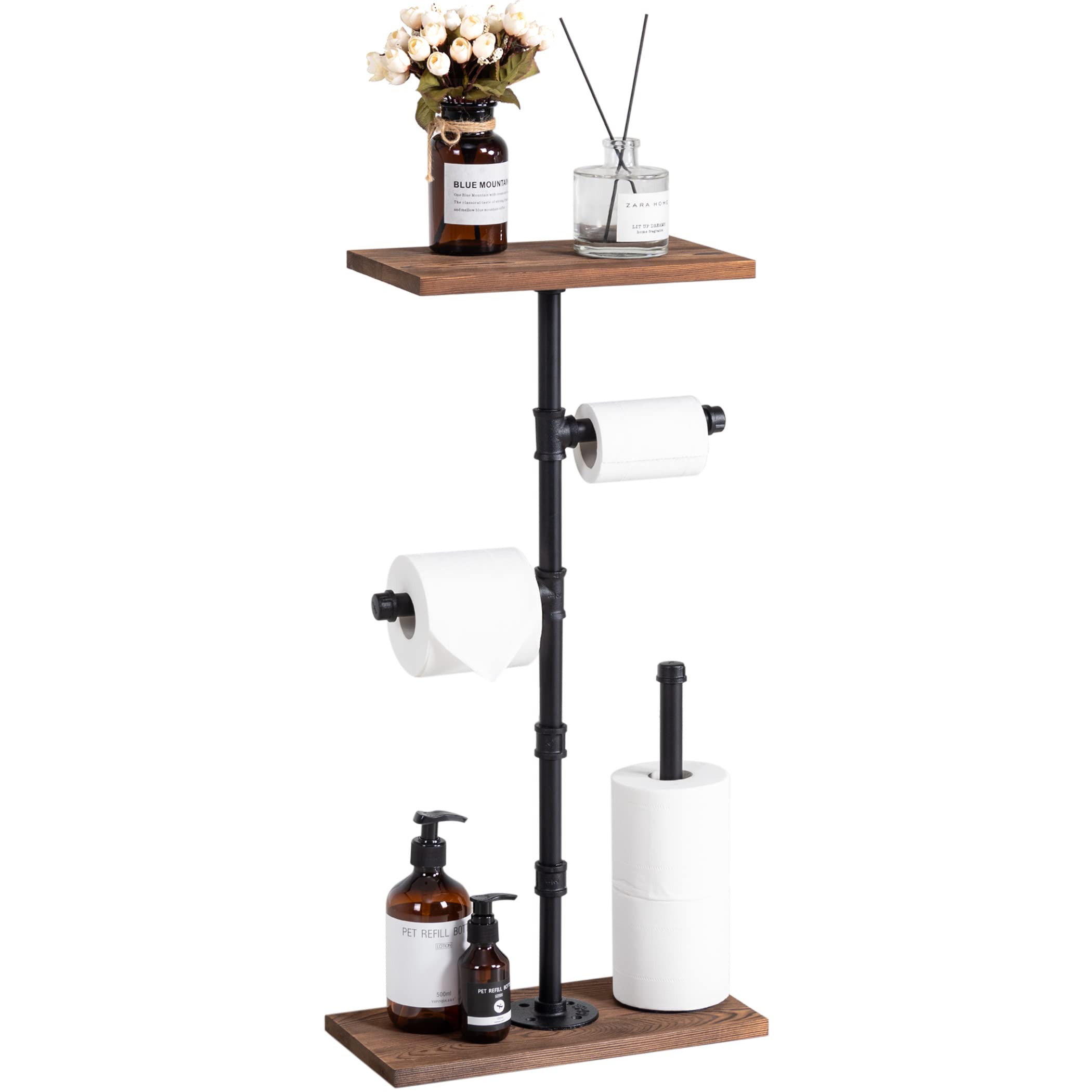 Lavievert Industrieller Toilettenpapierhalter, Doppelrollen-Toilettenpapierhalter Mit Rustikalem Holzregal, Wandmontage, Rohr-Toilettenpapierspender
