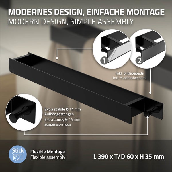 Passend fš¹r die meisten Rollen: nutzbare L?nge: 162 mm, Abstand von der Wand: 91 mm. Gro?er Knopf am Lenkerende verhindert das Herunterfallen der Toilettenpapierrolle. 2 Installationsoptionen: Sie k?nnen je nach Bedarf vertikale oder horizontale (rechts oder links) Installationen w?hlen Einfach zu installieren: Verpackung mit allen erforderlichen Beschlägen für Garderobenhaken, Schraubenkappen, Dehnschrauben und Dübel, Montageanleitung (evtl. Quadratischer Boden: Die quadratische Basis ermöglicht eine größere Fläche für den Handtuchring an die Wand, wodurch er stärker und langlebiger ist. Küche Schwarz Matt Grifflos – Die 15 besten Produkte im Vergleich Zunto Handtuchhalter Ohne Bohren 2er-Set Toilettenpapierhalter Und Handtuchring Schwarz Badezimmer Zubehor Set Quadratischer Handtuchring Schwarz Papierhandtuchhalter 88145539 Toilettenpapierhalter Fürs Bad nicht in deutscher Sprache), einfach zu installieren. Leyden Mattschwarzer Toilettenpapierhalter und Handtuchhalter, 2 teiliges Badezimmer Hardware Zubehör Set, SUS304 Edelstahl, stabile Wandhalterung, Toilettenpapierrollenhalter und Handtuchhalter