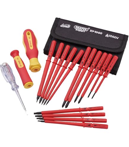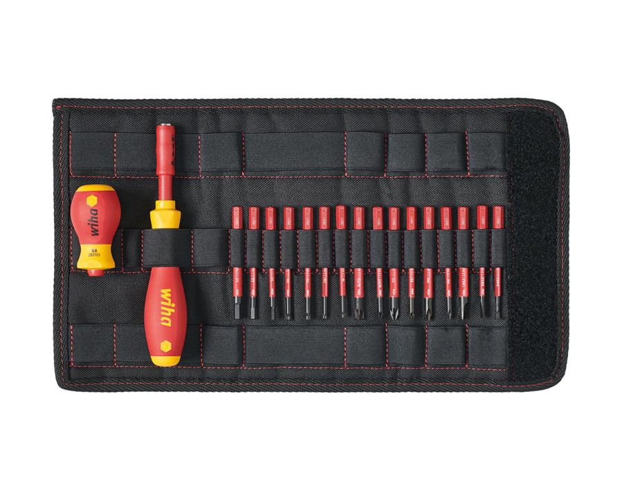 aufsteckbare Drehkappe und Weichmantelzone für Einsatz als Feinwerkzeug, AC 1000V, IEC 60900 : 2004 Felo Schraubendreher Set PB Swiss Tools Elektronik- Wechselklingen-Satz 7-teilig In Rolltasche Vde Werkzeug Set 10 IEC Wechselklingen mit 2Komponenten-Griff und Schaltschrankschlüssel in robuster smart BoxSicherheitswerkzeug nach DIN ISO 60900 - alle Schraubendreher stückgeprüft mit 10., 000 Voltsicherer Halt der Klingen im Griff, automatische Verriegelung gegen ungewolltes Herausziehenaufsteckbare Drehkappe und Weichmantelzone für Einsatz als FeinwerkzeugeKlingen: 2,5x0,4 / 3,0x0,5 / 3,5x0,6 / 4,0x0,8 / 5,5x1,0 / 6,5x1,2 / PH1 / PH2 / PZ2 / Z2Bit, Spanner 10x25mmSchaltschrankschlüsselGriffDrehkappe Abtrieb: SL, PH, PZ, Z (+/-), SPANNER, SQ, BH; Abtrieb Maße / Inhalt: 10x Klinge, Blade 2,5x0,4 / 3,0x0,5 / 3,5x0,6 / 4,0x0,8 / 5,5x1,0 / 6,5x1,2 / PH 1 / PH 2 / PZ 2 / Z 2 1x Bit, Spanner 10 x 25 1x Schaltschrankschlüssel / Unversal Cabinet key 1x Griff, Handle 95 x 32 mm 1x Drehkappe, Precision Cap Felo-Strongbox ; Klingenlänge mm: B: 130... Sicherheitswerkzeug nach DIN EN 60900 - alle Schraubendreher stückgeprüft mit 10., 000 Volt Klingen: 2,5x0,4 / 3,0x0,5 / 3,5x0,6 / 4,0x0,8 / 5,5x1,0 / 6,5x1,2 / PH1 / PH2 / PZ2 / +/+ PZ2, Spanner Bit 10x25mm, Schaltschrankschlüssel, Griff, Drehkappe Felo Schraubendreher Felo Wechselklnge E-smart VDE Square SQ 2 x 100 Felo Schraubendreher E-smart slim Griff online kaufen Elektronik- Wechselklingen-Satz 7-teilig in Rolltasche