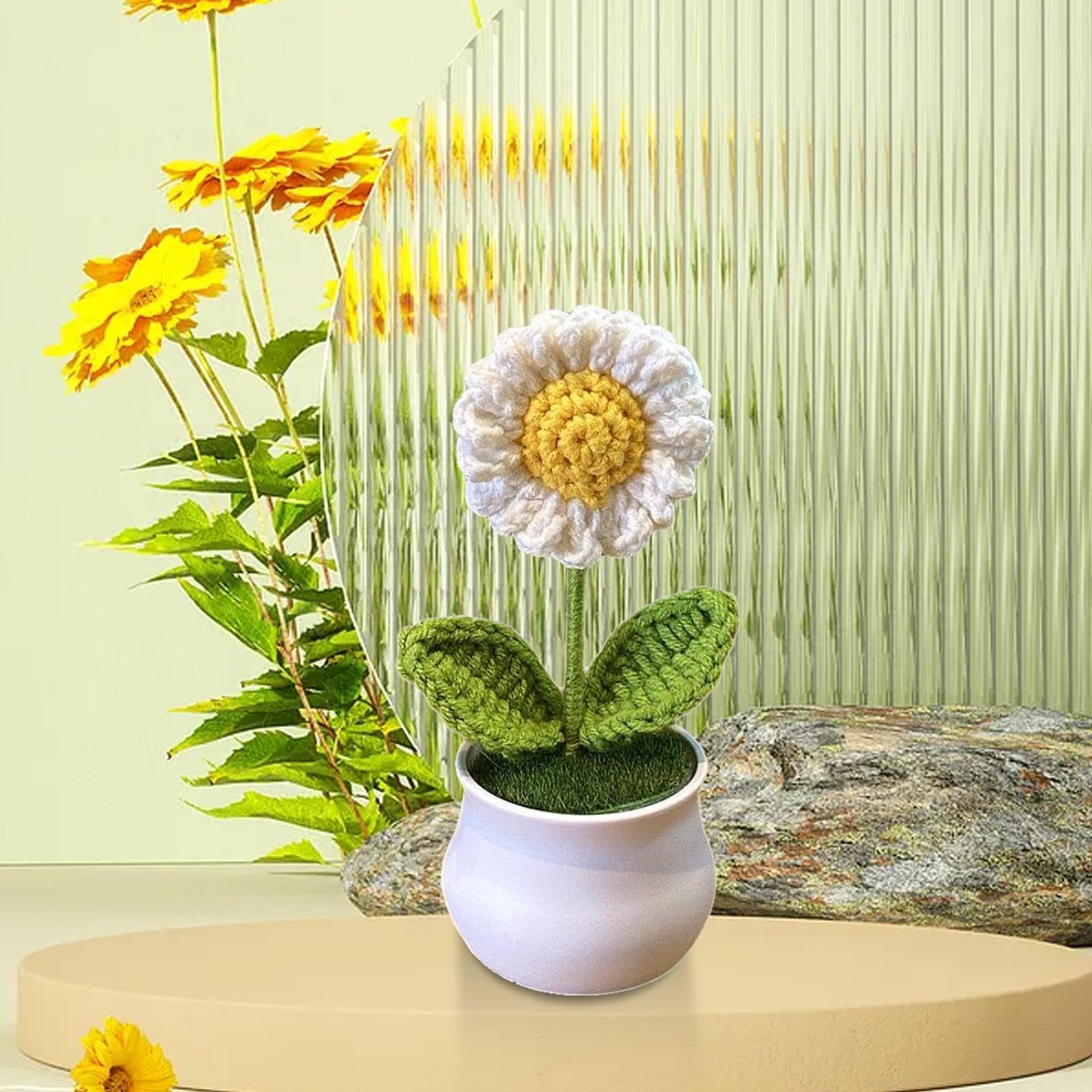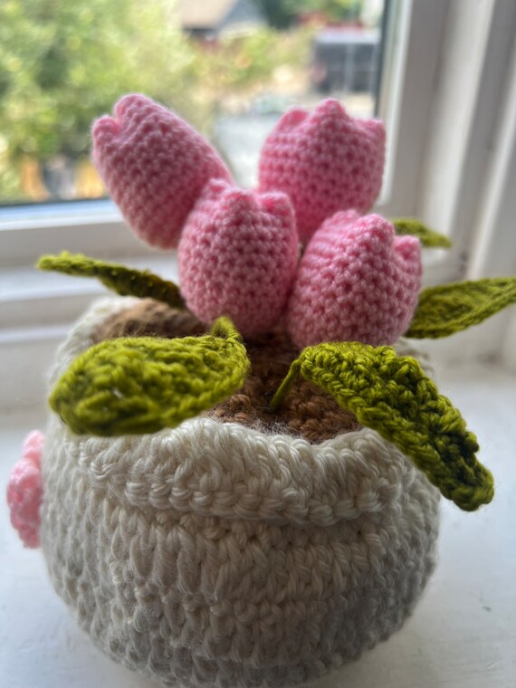 Gehäkelte Blumen Im Topf, Handgefertigte Gestrickte Mini-Topfpflanzen