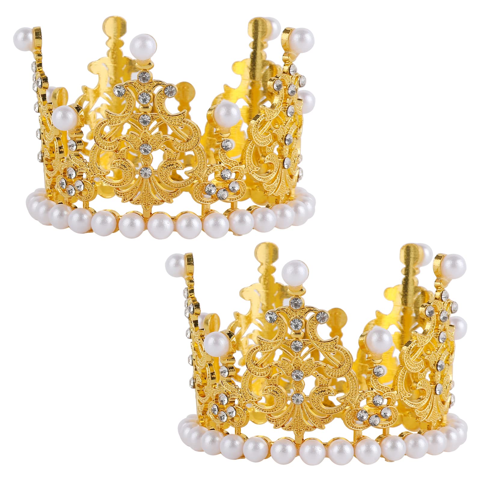 Amosfun 2 X Gold Crown Cake Toppers, Minia Tiara, Birthday Cake Topper, Small Crystal Beads, Cupcake Topper For Birthday Party, Wedding Cake, Baby Shower, Birthday Cake Decoration