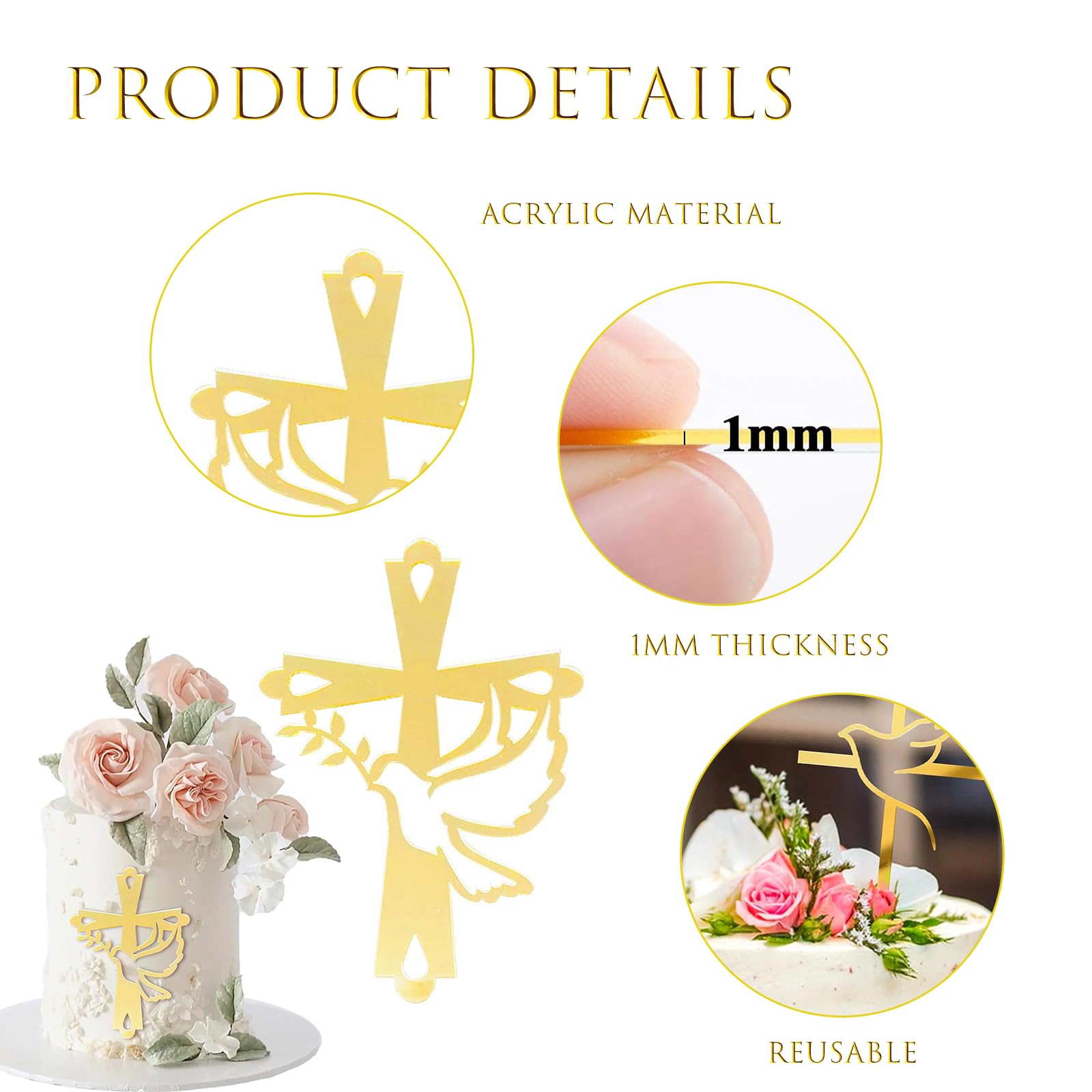 Taube Gold Acryl Torte Deko Xlwen 3 Stück Kuchendeko,Kreuz Kuchen