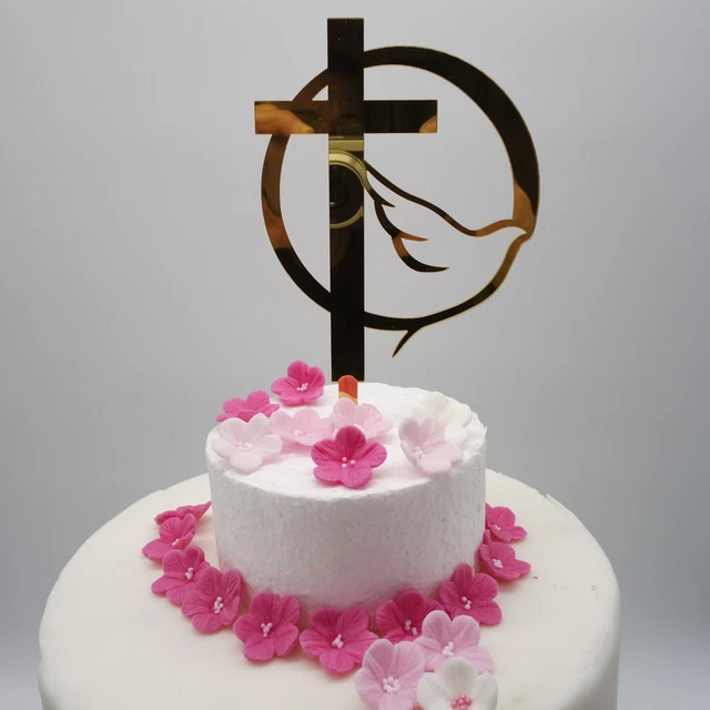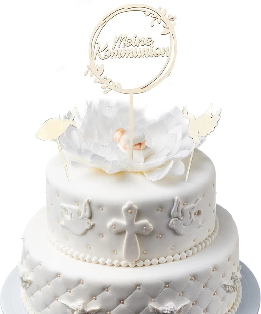 Tortenstecker Cake Topper FondantTaufe Kommunion Firmung Taube Kreuz
