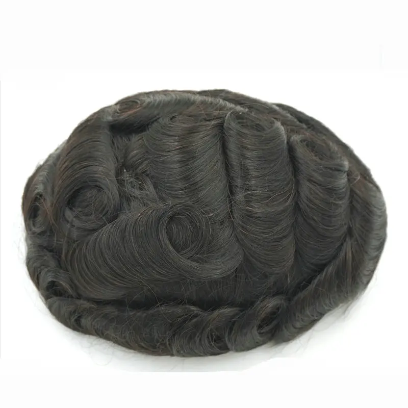Zwitserse Kant Clear Poly Mannen Toupee Indian Remy Hair Vervanging System Pruik Peruk Hombre Hair Stukjes (7 X 9 Inch, #1B