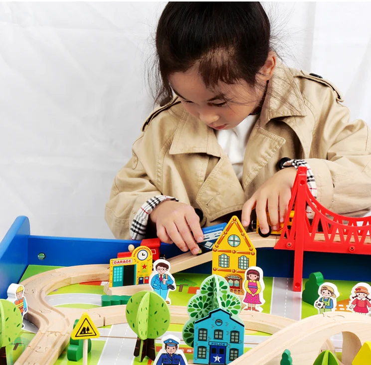 Iso Trade Train Track Wooden Toys Set 88 Pièces Railway Kids