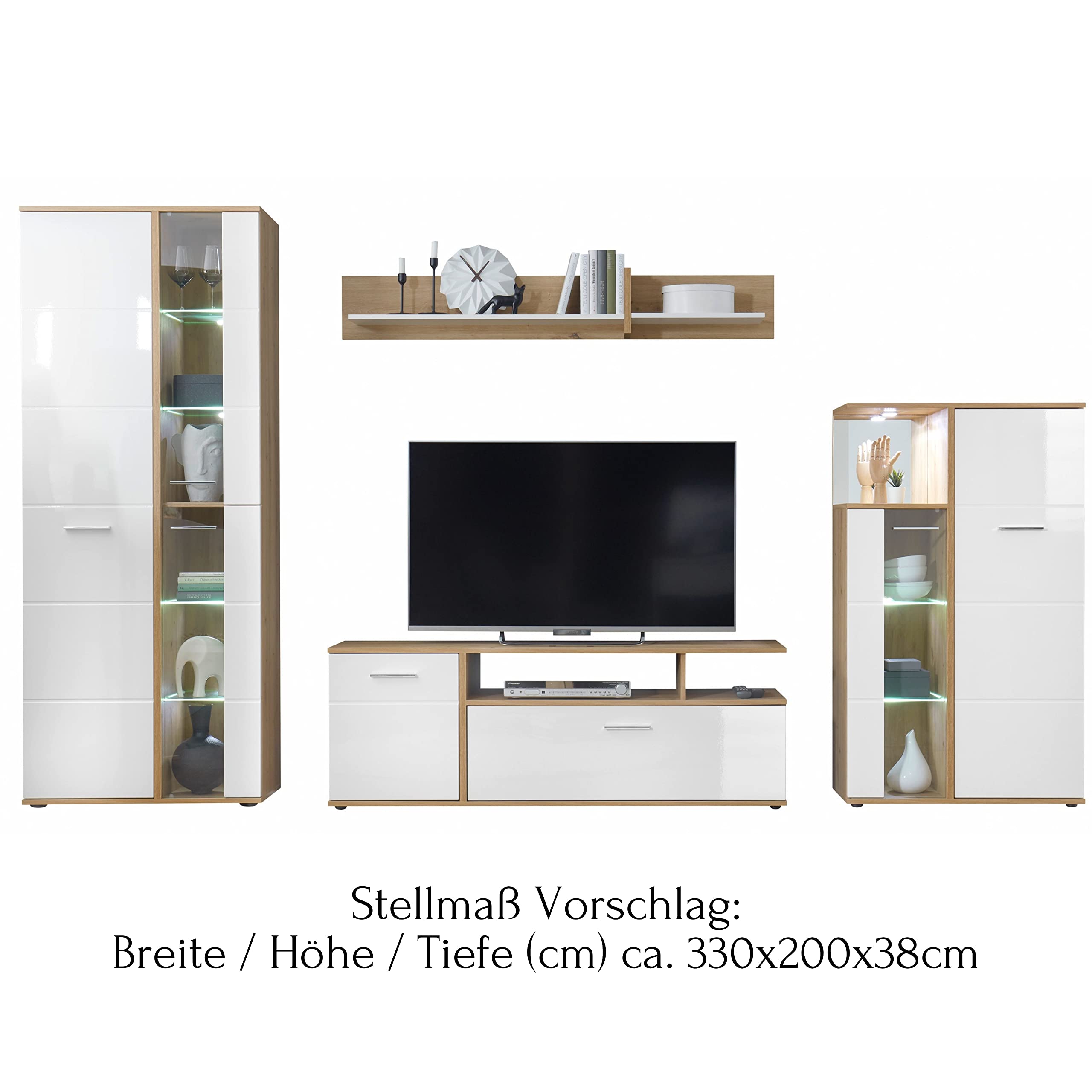Stella Trading SONOS Wohnwand Komplett-Set Mit LED-Beleuchtung
