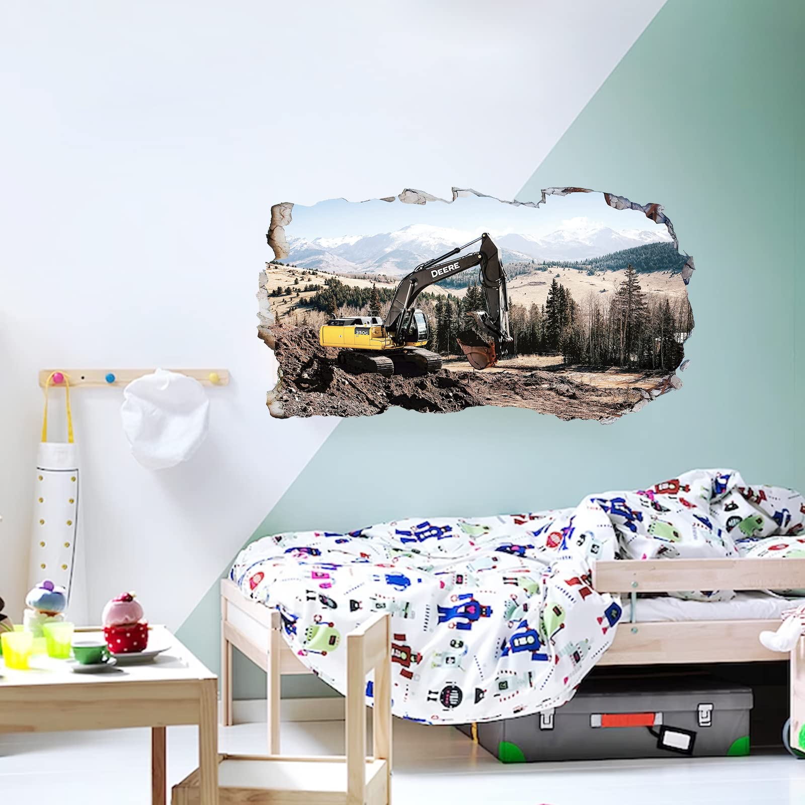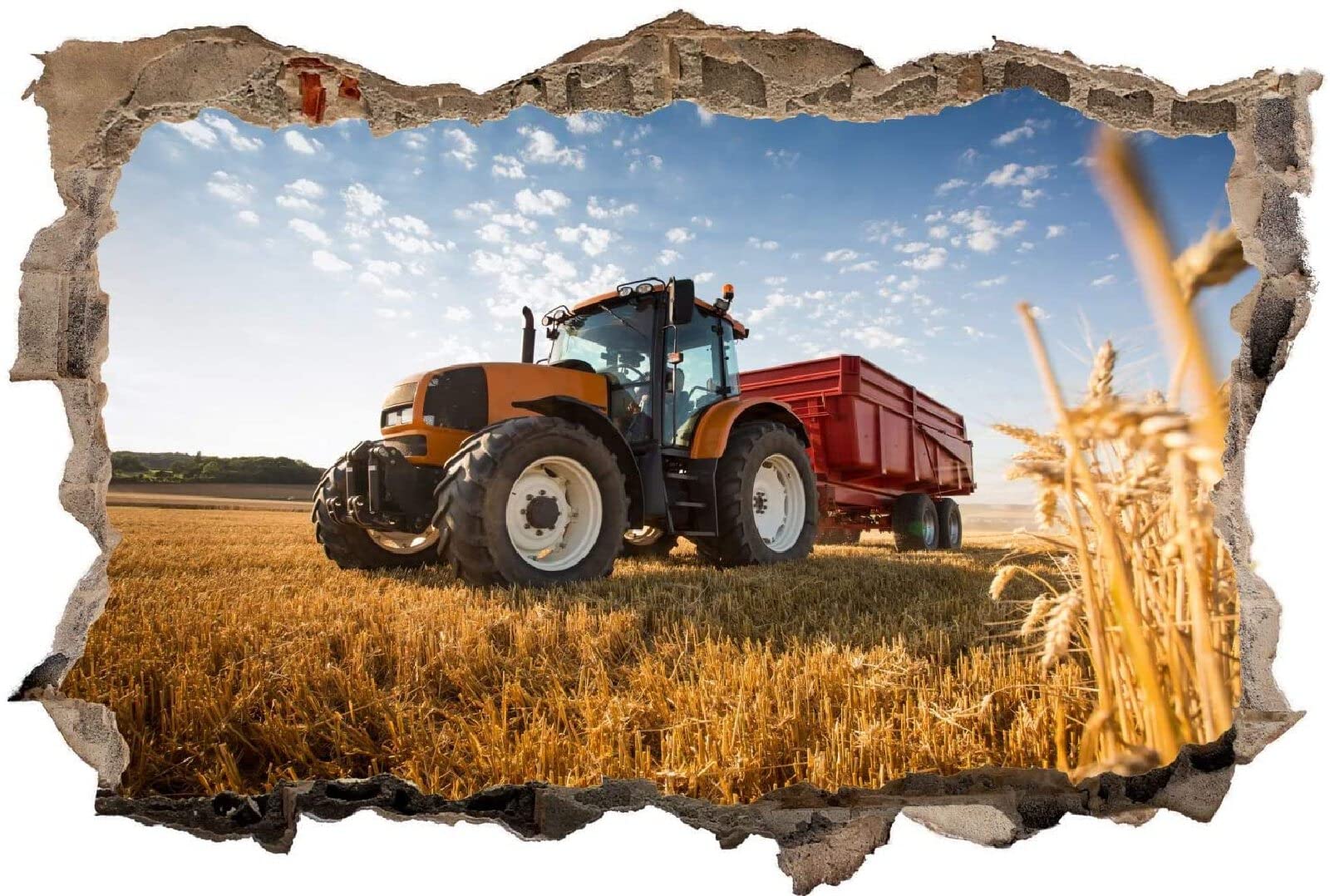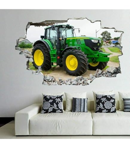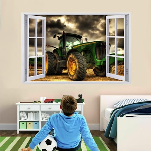 2Pcs Wandtattoo Traktor Trecker 3D Effekt XXL Farm Feld Landwirtschaft Wandaufkleber Fenster Selbstklebend Für Junge Kinderzimmer Groß 1000mmx600mm V15