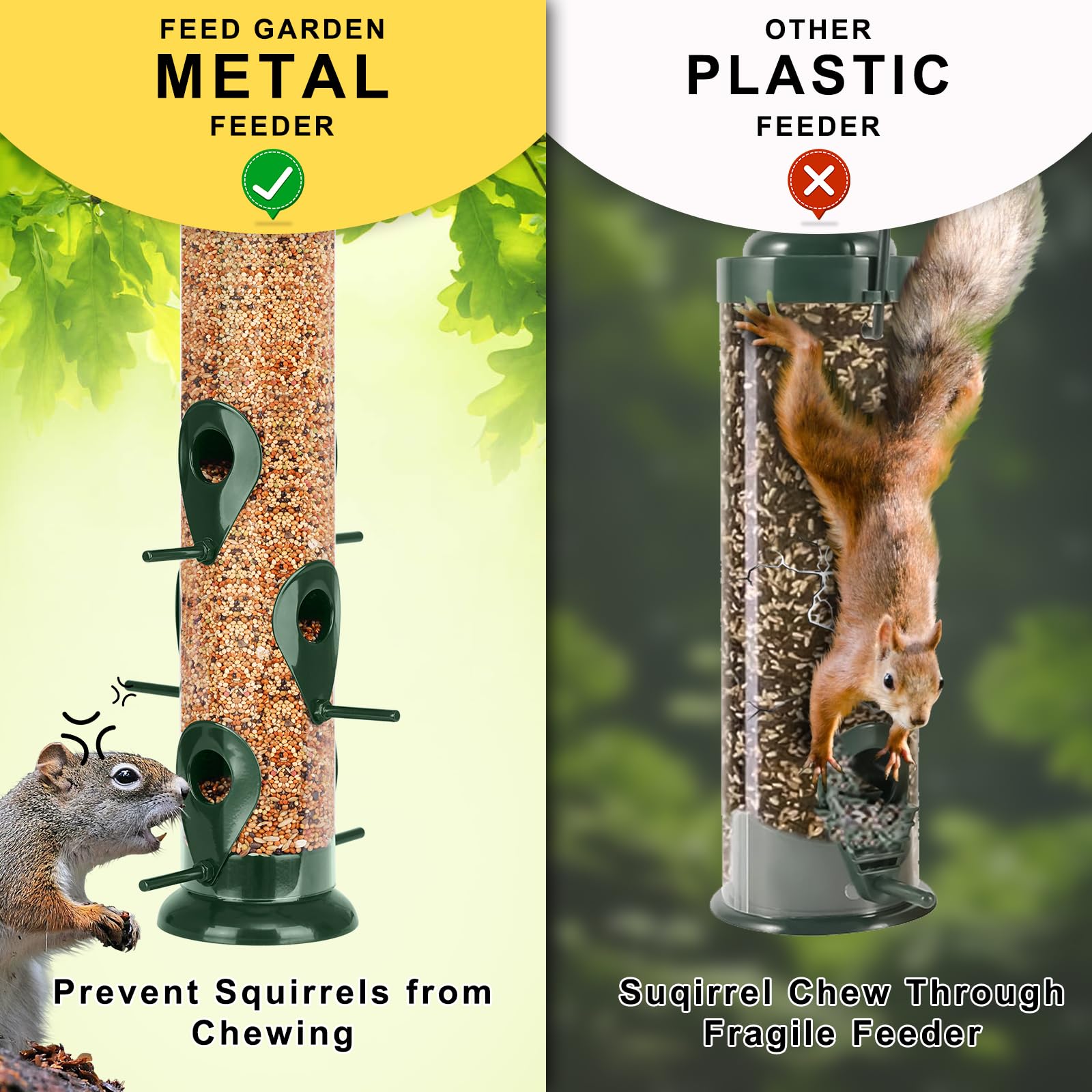 Bringen Sie genug Futter für die Vögel und locken Sie mehr Vögel in Ihren Garten. Regelmäßige Reinigung sorgt dafür, dass die Vogelfutterstation aus Metall besser funktioniert, um schöne Vögel anzulocken. Halten Sie sie gut gefüttert und locken Sie eine Vielzahl von Vögeln in Ihren Garten – das ganze Jahr über. Einladende Vielzahl von gefiederten Edelsteinen, sechs Futteröffnungen: Mit 6 Futteröffnungen stellen sich Vögel vor dem Morgengrauen auf, um von TrampgiK Vogelfutterstationen für den Garten zu speisen. Dieser Futterspender verfügt über sechs Futteröffnungen mit integrierten Sitzstangen, sodass mehrere Vögel gleichzeitig fressen können. Wenn ein Eichhörnchen Metallteile zerbricht, sind Sie mit unserer 12-monatigen Garantie abgedeckt. TrampgiK Vogelfutterspender aus Metallrohr zum Aufhängen im Freien, Finkenfutterspender für draußen, komplett aus Metall, 33 cm, 6 Anschlüsse, Schwarz (Samen ist nicht im Lieferumfang enthalten) TrampgiK Vogelfutterspender Aus Metallrohr Zum Aufhängen Im AOUZEA Vogelfutterhaus, Futterhaus für Vögel, Handontiertes Faltbarer... 3-Sekunden-Nachfüllung, Klappdeckel zum Öffnen, einfaches Nachfüllen und Reinigen: Der Klappdeckel zum Öffnen ermöglicht regelmäßiges Nachfüllen in 3 Sekunden, verwenden Sie nur eine Hand, drehen Sie den Deckel auf und gießen Sie den Samen hinein, kein Ärger, den gesamten Vogelfutterspender abzunehmen. Keine Mühe beim Abnehmen des gesamten Vogelfutterspenders. Regelmäßige Reinigung sorgt dafür, dass die Vogelfutterstation aus Metall besser funktioniert, um schöne Vögel anzulocken Geschenk für Vogelliebhaber: Retro-gebürstetes kupferfarbenes Aussehen, bequeme und einfache Reinigungsmethode. Keine Probleme mehr mit Blauhäher und Tauben, die den Futterspender in Schwung bringen!