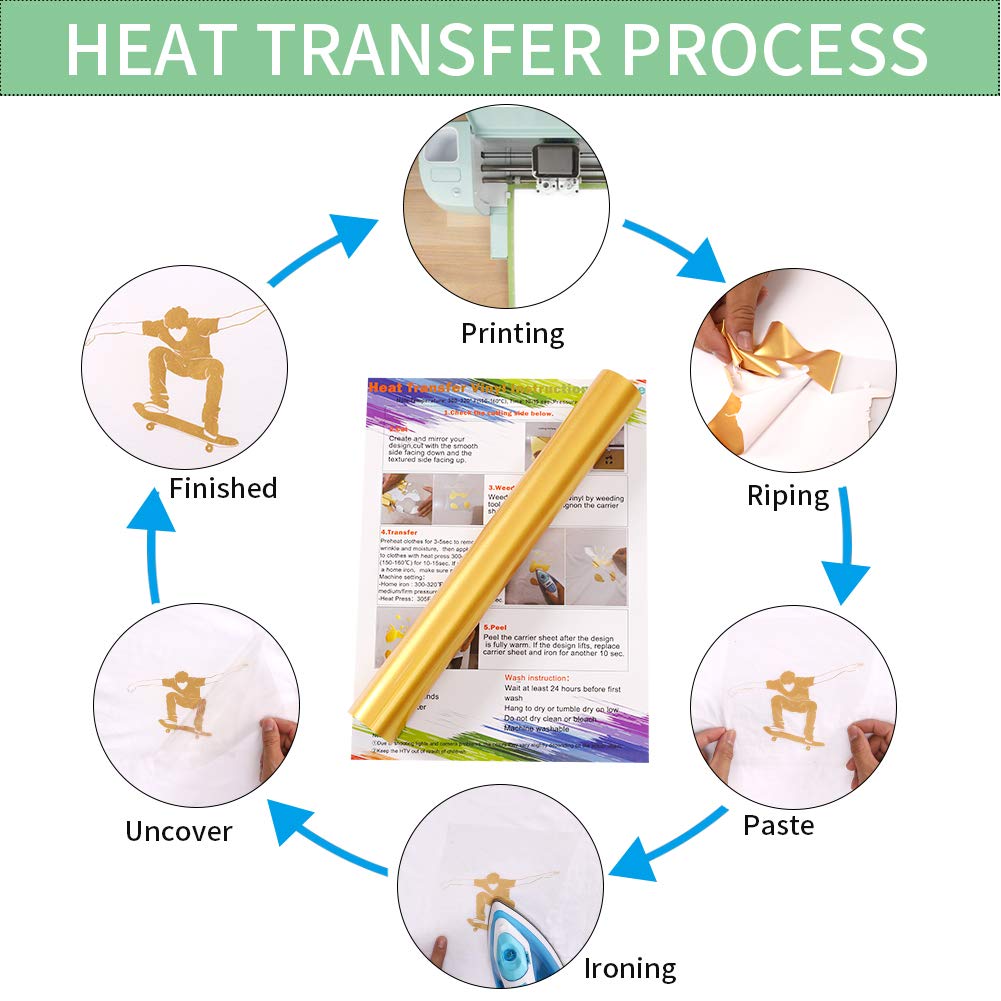 KEGUMINGX Heat Transfer Vinyl Gold Rolls HTV Vinyl Pack 12 Inch X