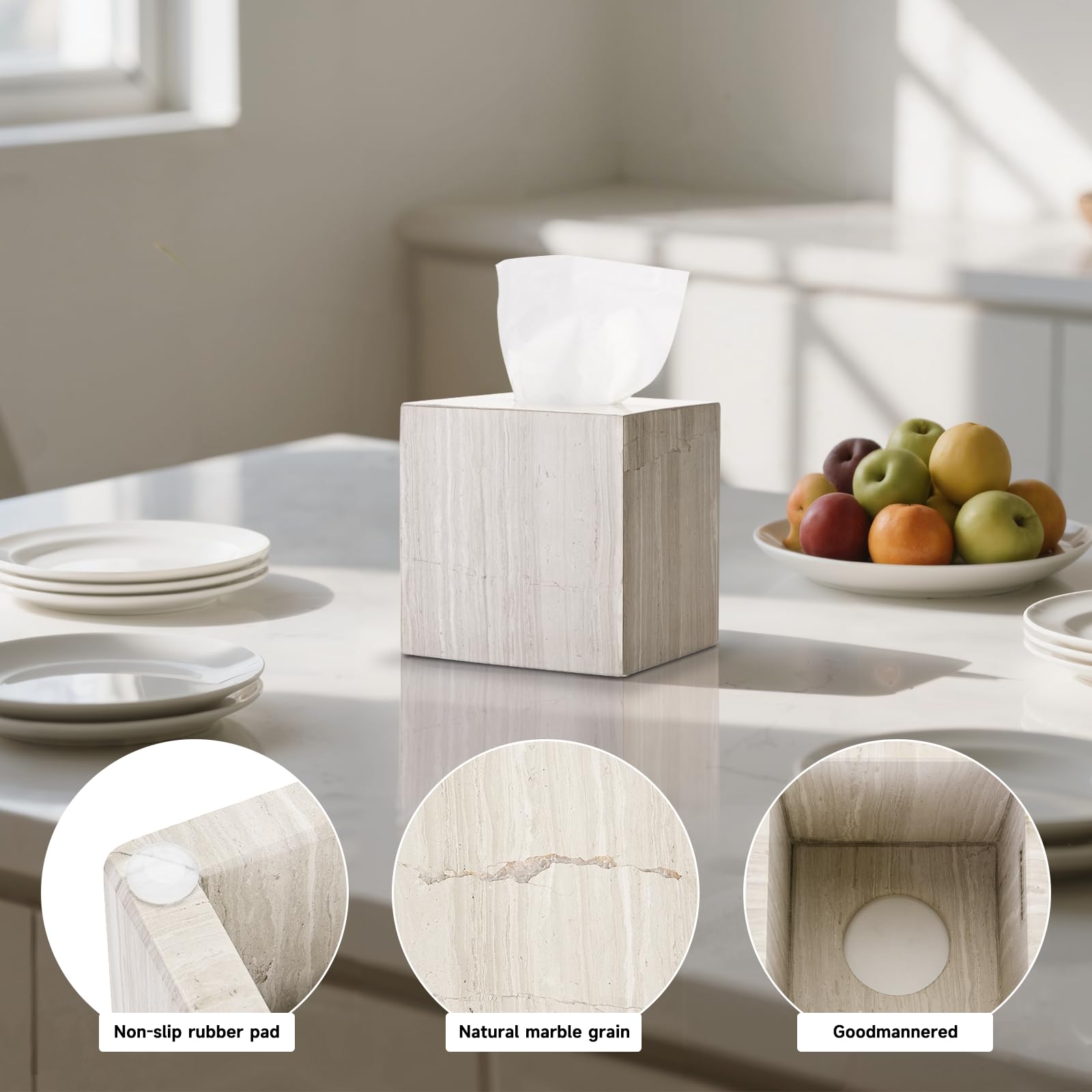 Edle Und Leichte Luxuriöse Taschentuchbox Aus Natürlichem Travertin-Marmor, Für Badezimmer, Büro, Schreibtisch, Arbeitsplatte, Waschtisch, Schlafzimmer, Nachttisch, Beige