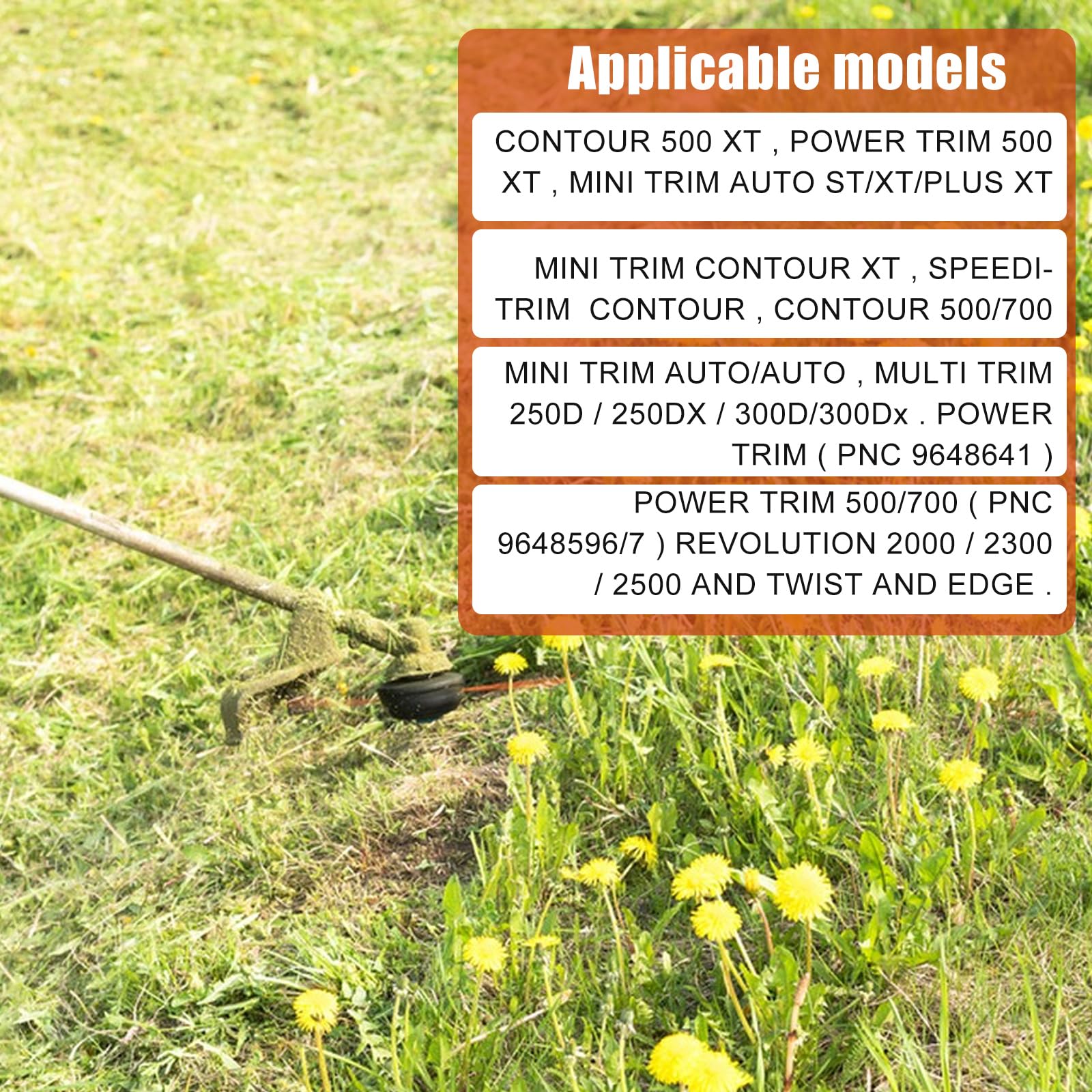 Größe & Modell Spulenmodell:FLYO21/513937190 Spulenabdeckung Modell FLYO60 Die Ersatzspule für Rasentrimmer ist 11 m lang, 1,5 mm im Durchmesser. Kompatibel mit Flymo Contour, Contour XT, Contour 500 XT, Contour 500E, Contour 700, Power Trim (PNC 9648641), Power Trim 500 XT, Power Trim 500/700 (PNC 9648596/7), Mini Trim, Mini Trim Auto ST/XT, Mini Trim Plus XT, Mini Trim Contour Unser XT, Auto XS. Und diese Akku-Unkrautfresser-Teile Nachfüllung ist nur für zartes Unkrautgras geeignet. Makita Rasentrimmer Spule QENETY Flymo Power Trim 500 Spule, 0,2 Cm, 4,9 M Flymo FLY021 Doppelschnur, 513937190 Spulenschnur, Kompatibel Mit Flymo Contour XT Spule, Contour 500 Faden Für Freischneider Die Ersatzspule für flymo besteht aus einem verbesserten Nylon-Polyamid-Material mit einer Zugfestigkeit von über 45,4 kg und ist 30 % haltbarer als andere Marken für eine längere Lebensdauer Paket: Typ 1:4 Trimmer Ersatzspule + 1 Spulenabdeckung Typ 2:6 Trimmer Ersatzspule + 1 Spulenabdeckung Typ 3:8 Trimmer Ersatzspule + 2 Spulenabdeckungen Typ 4:10 Trimmer Ersatzspule + 2 Spulenabdeckungen Hinweise: 1., Aufgrund der manuellen Messung erlauben Sie bitte geringfügige Fehler bei der Größe., 2., Die Farbe kann aufgrund unterschiedlicher Bildschirmeinstellungen leicht abweichen., 3., Bitte überprüfen Sie das anwendbare Modell sorgfältig vor dem Kauf. KOMPATIBILITÄT Kompatibel mit Flymo Contour, Contour XT, Contour 500 XT, Contour 500E, Contour 700, Power Trim(PNC 9648641), Power Trim 500 XT, Power Trim 500/700 (PNC 9648596/7), Mini Trim, Mini Trim Auto ST/XT, Mini Trim Plus XT, Mini Trim Contour XT ,Auto XT, Auto Mini Trim, Auto Plus, Speedi-Trim, Multi Trim 250D, Multi Trim 250DX, Multi Trim 300D, Multi Trim 300DX, Revolution 2000, Revolution 2300, Revolution 2500 T, Auto Mini Trim, Auto Plus, Speedi-Trim, Multi Trim 250D, Multi Trim 250DX, Multi Trim 300D, Multi Trim 300DX, Revolution 2000, Revolution 2300, Revolution 2500 Spezifikation: Name: Trimmer-Ersatzspulen Material: ABS, Nylon. 【Hochwertiges Material】ABS-Spule und strapazierfähiger Nylonfaden, flexibel, stark genug für lange Lebensdauer. Spulenmodell:FLYO21/513937190 Abdeckungsmodell:FLYO60 Länge je Spule: 11 m., Fadendurchmesser: 1,5 mm. Set mit 6 Doppelspulen von Flymo FLY021 mit 0,2 cm und 4,9 m Länge FLY021 Trimmerspule und FLY060 Spulenabdeckung für Flymo Contour XT Mini Trim Power Trim Multi Trim, 1,5 mm Doppelspule mit Autofeed-Spule und Abdeckung (4 Spule + 1 Abdeckung