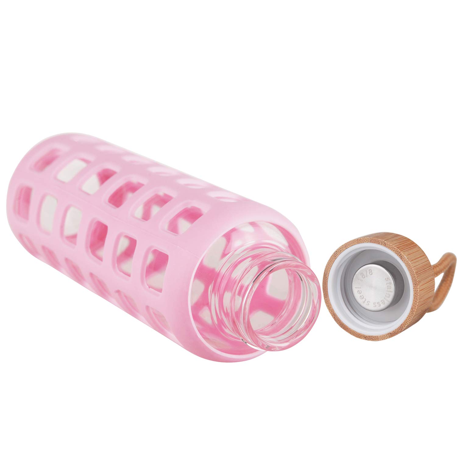 Trinkflasche aus Glas DREE für unterwegs | boddels | boddels - Made for life Hergestellt aus robustem Borosilikatglas, verfügt diese Flasche über ein transparentes Fenster, um Ihre Wasseraufnahme den ganzen Tag über zu überwachen. Die weiche rosa Silikonhülle bietet zusätzlichen Halt und Schutz. Fassungsvermögen: 650 ml. Trinkflasche Glas 750ml Mirage 650 Ml Einwandige Trinkflasche Aus Borosilikatglas Mit Bambusdeckel 100930 1 Glas Waterdrop Flasche Bei diesem schlichten und eleganten Design wird nichts verschwendet. Befriedigen Sie Ihren Stil und schätzen Sie die Ressourcen der Erde mit unseren ECO., LIFE-Flaschen. Der hochwertige Bambus-Schraubverschluss sorgt für eine sichere Abdichtung, während der praktische Tragegurt sie perfekt für unterwegs macht. Eine verstellbare Tragekordel ist eine perfekte Ergänzung. Unsere Flasche aus Borosilikatglas ist von weichem Silikon umschlossen und mit einem Deckel aus natürlichem Bambus versehen. Mirage 650 ml einwandige Trinkflasche aus Borosilikatglas mit Bambusdeckel ; Material. 90% Borosilikatglas, 10% Bambusholz ; Mindestbestellmenge. 10 Stücke Kapazität: Große 625 ml Borosilikatglasflasche, perfekt für den täglichen Hydratationsbedarf und Temperaturbeständigkeit Bleiben Sie stilvoll hydratisiert mit dieser eleganten 625 ml Glas-Wasserflasche. Mit 650 ml Fassungsvermögen hat sie die perfekte Größe für Ihre tägliche Flüssigkeitszufuhr. Willkommen bei Großhandels-Qualitäts-Wasserflasche aus Glas mit Bambusdeckel von Xiamen Ebei, die zu 100% aus festem Bambus besteht. Hergestellt aus robustem Borosilikatglas, verfügt diese Flasche über ein transparentes Fenster, um Ihre Wasseraufnahme den ganzen Tag über zu überwachen. Der hochwertige Bambus-Schraubverschluss sorgt für eine sichere Abdichtung, während der praktische Tragegurt sie perfekt für unterwegs macht