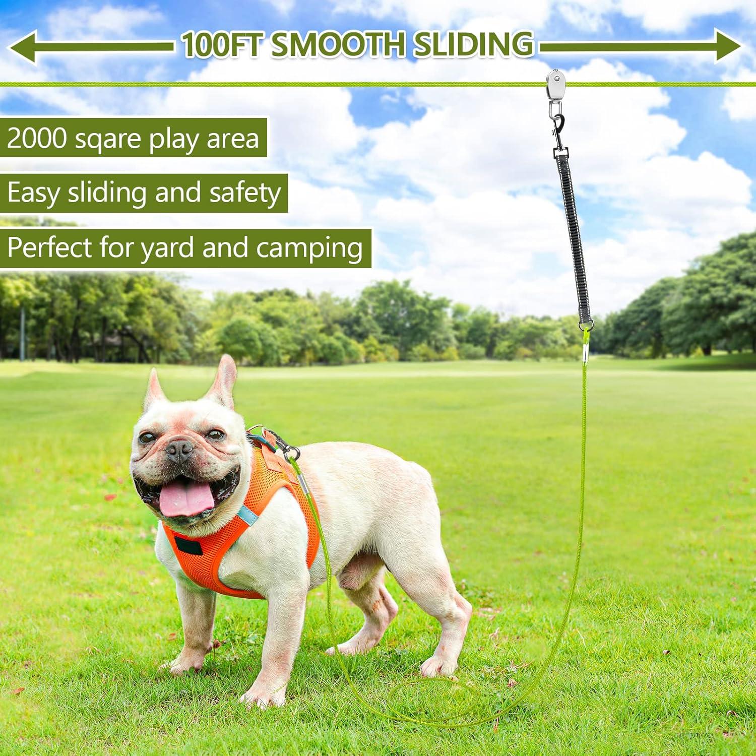 Hund Joggen Leine XiaZ Hundeleinenkabel – 61 M Langer Trolley-Läufer Für Hunde Bis Zu 113 Kg, Hof, Camping, Outdoor-Einsatz Mit 2,4 M Nylon-Bungee- Läufer, Kabelschlinge Für Bäume Jogger Leine Hund