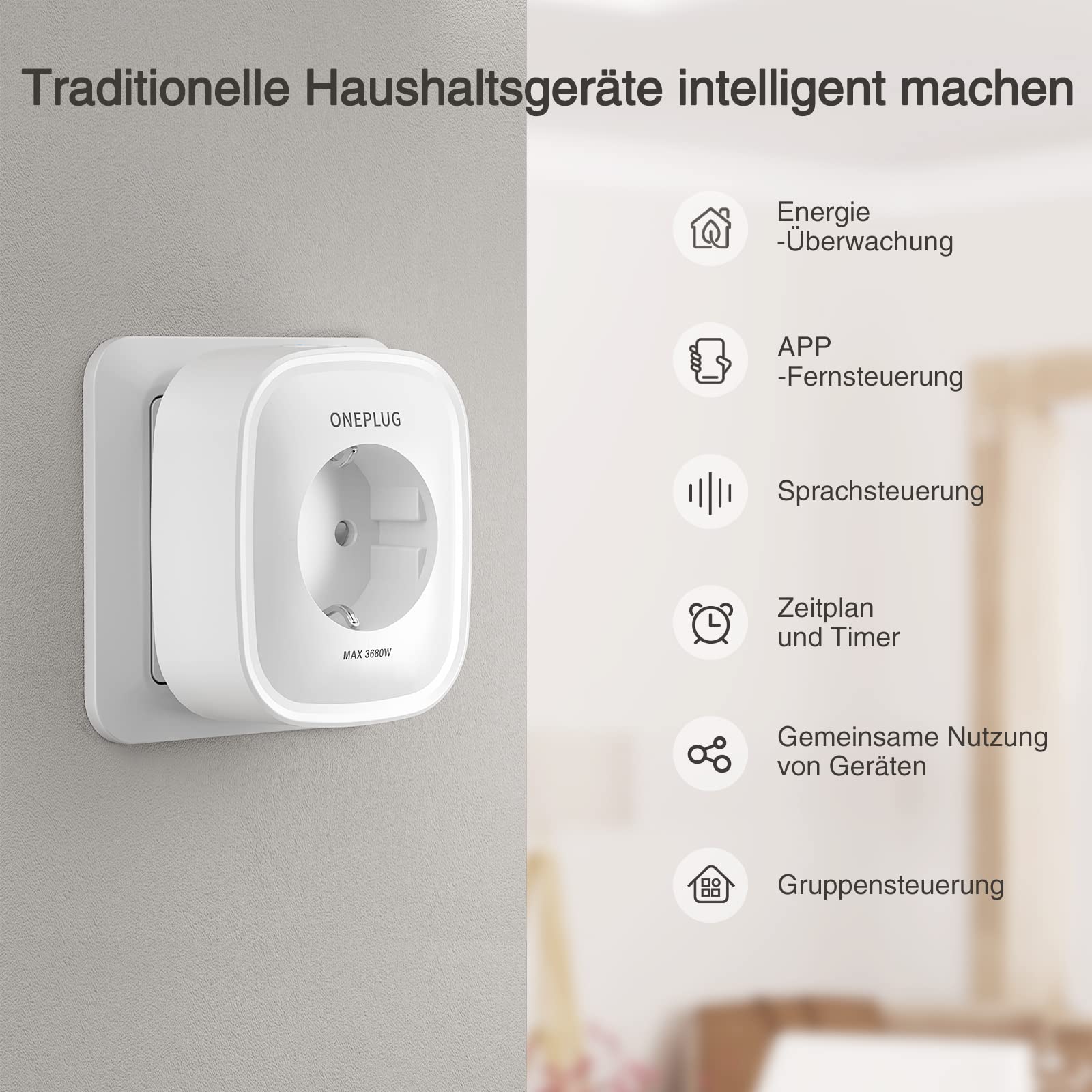Die Steckdose funktioniert mit der Smart Life-App. Das kompakte Design ermöglicht eine perfekte Passform in jeder Steckdose, ohne andere Steckdosen in der Nähe zu blockieren. Intelligente Steckdose Tuya – Intelligente WLAN-Steckdose Mit Energiemessung – 2xUSB – Weiß – Gosund SP112 Amazon Steckdose Alexa Entdecken Sie die vielseitige WLAN Smart Steckdose von EIGHTREE, die Ihr Zuhause in ein intelligentes Smart Home verwandelt. Mit diesem 4er Pack erhalten Sie die perfekte Lösung, um Ihre elektrischen Geräte bequem zu steuern und den Energieverbrauch zu überwachen Kompaktes Design: Nimmt wenig Platz ein und ermöglicht die Verwendung benachbarter Steckdosen ohne Unannehmlichkeiten. Steuern Sie Ihre Elektronik mit der kostenlosen Smartphone-App von überall Überwachung des Energieverbrauchs: Die Steckdose hilft Ihnen bei der Überwachung Ihres Energieverbrauchs. Leistung: 3680W (16A) - Abmessungen: 8,5 x 5 x 5 cm - Intelligente Steckdose geeignet für alle Geräte bis 3680 Watt (16A) - Fernsteuerung mit Smart Life App - Jederzeit und überall vom Mobilgerät aus steuerbar - Steuerung auch möglich über Freisprech-Sprachsteuerung - Kompatibel mit Siri, Alexa und dem Google Assistant - Funktioniert problemlos mit Ihrem vorhandenen WLAN zu Hause ▶ Unterstützt 2.4GHz Wi-Fi - Echtzeit-Stromstatistik des Stromverbrauchs, Spannung, uvm. Alexa WLAN-Steckdosen Tests: Bewertungen & Preise im Vergleich Programmierung und Timer: Erstellen Sie personalisierte Routinen, um Geräte nach Ihrem Zeitplan ein- oder auszuschalten. Vereinfachen Sie Ihr Leben und steuern Sie Ihre Geräte mit nur einer Berührung oder Sprachbefehl dank der Smart Life WiFi Smart Steckdose. Reduzieren Sie den Stromverbrauch, indem Sie unnötige Geräte ausschalten, wenn Sie sie nicht benötigen, und optimieren Sie die elektrische Nutzung Ihres Hauses. Fortschrittliche Sicherheitsfunktionen: Überlastschutz und robuste Materialien für eine sichere und zuverlässige Verwendung. Entdecken Sie den Komfort und die Effizienz der Smart Life WiFi Smart Steckdose, die entwickelt wurde, um Ihr Zuhause in einen intelligenten und vernetzten Raum zu verwandeln. Diese Steckdose ist ideal für diejenigen, die ihre elektronischen Geräte von überall mit Hilfe einer intuitiven mobilen App steuern möchten. Mit dieser Steckdose können Sie Lichter, Haushaltsgeräte und andere Geräte mit einfachen Sprachbefehlen oder über Ihr Smartphone ein- und ausschalten. Kompatibel mit Sprachassistenten wie Alexa, Google Home und HomeKit. Auf Lager: Intelligente WLAN-Steckdose, 2er-Pack, kompatibel mit Alexa, Google Home und Smart Life, programmierbare WLAN-Steckdosen mit Fernbedienung, Sprachsteuerung und Timerfunktion zum besten Preis, BD-21400. Eine schnelle Lieferung überall in Deutschland möglich - Zeitplan und Timer-Funktion: automatische Zeitpläne für angeschlossenes Gerät