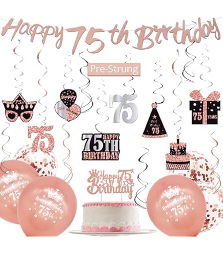 Breite Anwendung: Hängen Sie sie von der Decke, über einem Tisch, unter der Veranda oder von Zweigen in Bäumen. Das Geburtstagsdekorationsset passt perfekt zu Ihrer Dekoration Präferenz. Produktgarantie und Kundendienst: Jedes Produktproblem mailen Sie uns bitte, wir stehen 24 Stunden und wir versprechen zufriedenen Service für Sie. Deko 75 Geburtstag Mann Rose Gold 75th Birthday Decorations Number 75 Circle Dot Twinkle Star Garland Metallic Hanging Streamer Banner Backdrop For 75 Year Old Birthday Happy 75th Anniversary Seventy Five Party Supplies Party Deko 75 Geburtstag 1 WIMPELKETTE 75.Geburtstag 10m GIRLANDEN PARTY DEKO Qualität und Spezifikation: Das Happy Birthday-Banner und das Dreieck-Banner sind aus stabilem, hochwertigem, umweltfreundlichem Karton. Jeder Wirbel hat eine Kunststoffschlaufe an der Oberseite zum einfachen Aufhängen. Damit wird Ihre Geburtstagsparty fabelhaft extravagant. Verwenden Sie sie, um einen traumhaften Hintergrund für Ihre Geburtstagsfeier zu schaffen. Das Paket beinhaltet: 1 Set Happy Birthday-Banner Dreiecksbanner x 1 Set Hängender Wirbel x 6 Stück Wir haben auch Geburtstagsdekorationsset für verschiedene Altersgruppen wie 13., , 16., , 18., , 30., , 40., , 50., , 60., , 70., Freundlich für Ihre Aufmerksamkeit, dass das Banner zum 18., Geburtstag vormontiert geliefert wird. Genießen Sie Ihre Veranstaltung! Wimpelkette mit der Zahl 75, für Geburtstage und Jubiläum, von Pd-Party