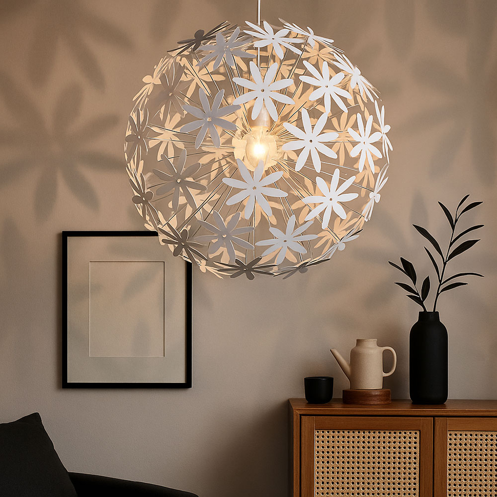 Garantie: 1 Jahr (außer Bruch)., Design Pendelleuchte Ob im Hotel, oder in einem Empfangsbereich, in einem Restaurant wird sie alles in Szene setzen. Hängeleuchte Soliflore – Durchmesser: 60 und 40 cm. Mit weltweitem Versand bei Pamono b Hängeleuchte, Blüten Design, weiß, 60 cm, STELLA im Netto Online-Shop bestellen − Schnell, bequem und einfach! Versandkostenfrei ab 50 € Kostenfreie Rücksendung Kauf auf Rechnung Dank eines luftigen Lampenschirms wird die Beleuchtung Ihres Wohnraums großzügig und fein sein. Hängeleuchte aus weißem Metall und natürlichem Rattan. Man kann mit den verschiedenen Modellen Flore und Soliflore jonglieren. Sie können ihn allein oder in Wiederholung gleicher Module sorgfältig ausgerichtet als freiere Zusammensetzung, die verschiedene Formate zusammengefügt und auf unterschiedliche Höhen aufgehängt werden können! Es passt auf einen Tisch, eine Theke oder einen Schreibtisch. Pendelleuchte Blume Glas UMAGE Silvia Medium Hängeleuchte In Weiß Lampe Kinderzimmer Mädchen Maße: Durchmesser 60 cm x Höhe 31 cm. Das Rattan an den Kanten der Hängeleuchte betont perfekt die Form und den Geist des Lampenschirms, authentisch und macht das Aussehen des Lampenschirms perfekt. Diese Leuchte gibt es in 2 Größen: Durchmesser 40 cm x Höhe 8 cm, Durchmesser 60 cm x Höhe 10 cm. Hängeleuchte Wivara, fünfflammig, weiß Moderne Tapete - LILJEKONVALJ SPRING GREEN - SAND BERG - Naturmotiv