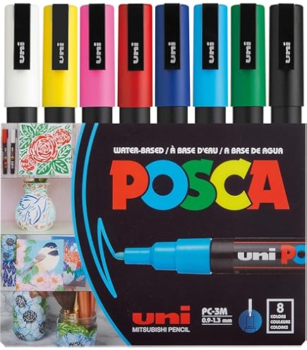 PRÄZISE SPITZE: Der POSCA PC-1MR Marker verfügt über eine extra feine 0,7mm Spitze für detaillierte und präzise Markierungen Der POSCA Marker PC-1MR in Blau von UNI ist ein vielseitiger und präziser Markierstift für kreative Gestaltungsmöglichkeiten. QUALITÄTSMARKER: Professioneller Marker mit gleichmäßigem Tintenfluss und zuverlässiger Deckkraft Uni Paint Marker UNIBALL Marker POSCA PC-1MC Borde.rot 665554, 4,19 Uni Posca Acrylmarker Dieser Artikel: POSCA uniball LackMarker PC1MR, dunkelblau 4902778089873 366€ Lieferung + Posca Uni PC-1MR Kunst-Marker, Farbstift, 0,7 mm, Schwarz und Weiß, 2 Stück 753€(3,77 €/Stück) Erhalte es bis + POSCA Uni-Ball Marker Stift, Farbe: Weiß, PC-1M, 3 Stück 1099€(3,66 €/Stück) Erhalte es bis Gesamtpreis Die handliche Form ermöglicht ermüdungsfreies Arbeiten auch bei längeren Kreativprojekten. Der POSCA PC-1MR überzeugt durch seine zuverlässige Qualität und vielfältigen Einsatzmöglichkeiten im kreativen Bereich. Der Marker eignet sich hervorragend für verschiedene Oberflächen und zeichnet sich durch seine gleichmäßige Farbabgabe aus. WASSERBASIERTE TINTE: Hochwertige, deckende Pigmenttinte in Blau für langanhaltende und lichtbeständige Ergebnisse Dieser Marker ist ideal für künstlerische Projekte, Beschriftungen oder zum Gestalten von Karten und Dekorationen. Uni-Ball Markör Posca 0.7 mm Su Bazlı Poster Yeşil N Pc-1mr Fiyatı Zurück zur Liste POSCA PC-1MR Startseite Künstlerstifte Marker POSCA POSCA PC-1MR Marker UNI POSCA PC-1MR dunkelblau
