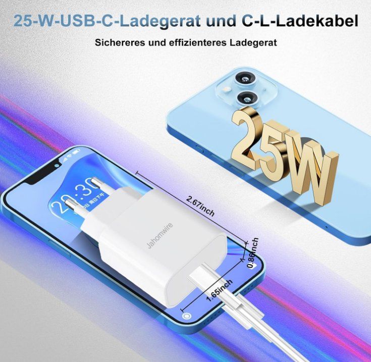 Kommt mit C zu C Ladekabel. Sicher und Zuverlässig USB C Ladegerät: Der ladestecker USB C verfügt über einen integrierten Smart-Chip, der die Leistung automatisch an die Anforderungen des Geräts anpassen kann. USB C Schnellladegerät mit iPhone 16 Ladekabel: Das netzteil USB C kann das iPhone 16 Pro Max in nur 30 Minuten auf 50 % aufladen, spart mehr als 1,5 Stunden und ist dreimal schneller als ein herkömmliches 5W apple ladegerät. 20W USB C Schnellladegerät mit iPhone 15 Ladekabel USB C Das speziell für die iPhone 16/15 serie entwickelte USB C adapter mit 2m USB C auf USB C kabel bietet eine maximale Ausgangsleistung von 20 W, dadurch haben Sie mehr Zeit, Ihr Gerät zu genießen, und müssen weniger auf das Aufladen warten. Unterstützt die Datensynchronisation mit 480 Mbit/s zwischen Ihrem Gerät und Ihrem Laptop. Das apple USB C ladekabel unterstützt Power Delivery Schnellladung, der USB-C Anschluss bietet ein benutzerfreundliches reversibles Design, bis zu 3A Ausgangsleistung Schnellladung und bis zu 480 Mbps Datenübertragungsgeschwindigkeiten. Überstrom-, Überspannungs- und Kurzschlussschutz schützt Ihr Gerät effektiv vor Schäden und sorgt für sicheres Laden in der Nacht. Der 20W USB C Power Adapter (Ladegerät) ermöglicht schnelles, effizientes Aufladen zu Hause, im Büro oder unterwegs. Er ist kompatibel mit allen USB C fähigen Geräten BRAIDOL Ladeset 20W Schnellladegerät USB-C Lightningkabel Passt Fuer Iphone Usb Ladegeraet 2 22 Ma 3 Stueck 1 8m Usb Ladegeraet 3 Tlg 3x Adapter 20 Watt Plus 3x Ladekabel Usb C Auf Lightning Passt Fuer Iphone 14 Pro Max 14 Plus 13 12 11 Xr Se Ipad S0qdj0ll Das ultrakompakte design des iPhone 15 ladegerät passt bequem in jede Tasche oder Handtasche und ist somit der perfekte Reisebegleiter für unterwegs. Bitte bestätigen Sie Ihr iPad- oder Mobiltelefonmodell vor dem Kauf. Original 20W Apple iPhone 16 15 14 Pro Max Schnellladegerät USB-C USB C iPhone Ladekabel mit iPhone 16 Ladegerät Universelle Kompatibilität: Smartphones: iPhone 16 Pro Max/16 Pro/16 Plus/16/15 Pro Max/15 Pro/15 Plus/15; Samsung Galaxy S25/S25 Ultra/S25+/S25S24 Ultra/Galaxy S24+/Galaxy S24 [4]/ S23 / S23+ / S23 Ultra / S22 / S22+ / S22 Ultra / S21 / S21+ / S21 Ultra., ., ., ., ., Tablets: iPad Mini 7 (2024), iPad Mini 6 (2021) iPad 11 Generation (2025) iPad 10 Generation (2022) iPad Air 11 inch (2024), iPad Air 13 inch (2024), iPad Air 5 (2022), iPad Air 4(2020) iPad Pro 13 inch (2024), iPad Pro 11 4rd (2022), iPad Pro 11 3rd (2021), iPad Pro 11 2nd (2020), iPad Pro 11 (2018) iPad Pro 12., 9 in 6th (2022), iPad Pro 12., 9 in 5th (2021), iPad Pro 12., 9 in 4th (2020), iPad Pro 12., 9 in 3rd (2018) Kompatibel mit allen USB-C Android-Telefonen: Alle anderen Android-Handys mit Typ-C-Anschluss. iPhone 17 16 15 Ladekabel mit Ladegerät stecker, 20W USB C Schnellladegerät netzteile mit USB C Kabel 2M für Apple iPhone 17 Air/16/15/Pro Max/Plus, iPad 12.9, 11 10/Mini/Pro/Air, ipad Adapter Type C bei . Große Auswahl an Netzteile in Elektronik & Foto zu günstigen Preisen
