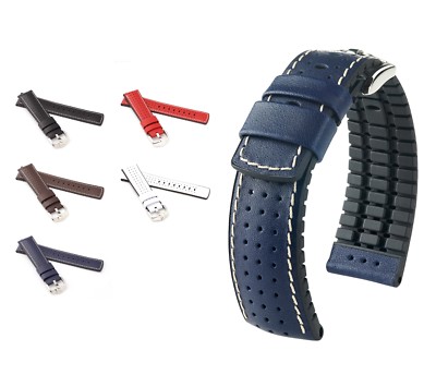 Uhrenarmband (091-50-75) Tiger 22mm Dunkelblau Leder/Kautschuk Racing