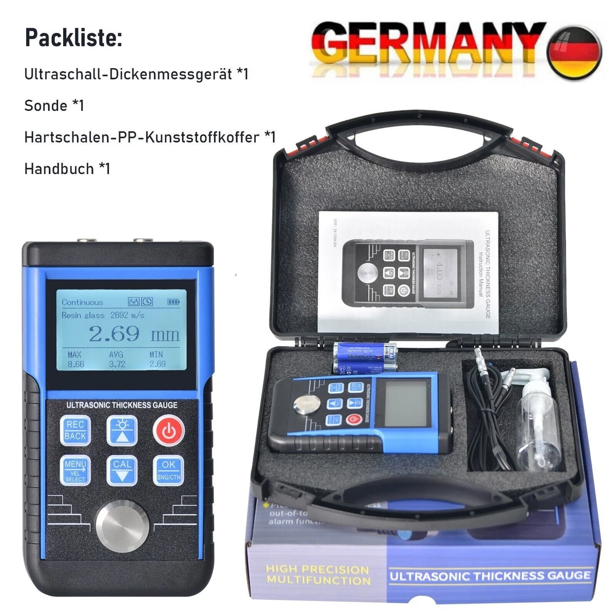 Voreingestellte 12 Schallgeschwindigkeiten für unterschiedliche Materialien. 155 78 33 mm / 6,1 3,1 1,3 Zoll Paketliste: 1 Ultraschall-Dickenmessgerät 1 Dia., 10 Wandler (5KHz) 1 Dia. Große, mit den Fingern abgestimmte Tasten für den großen Bereich, der Körper ist ergonomisch gestaltet. Ultraschall-Dickenmessgerät - Positector UTG - NEURTEK - tragbar / Stahl / Korrosion Spezifikation: Bedingung: nagelneu Modell: GM130 Messbereich: 1., 00-300., 0mm (Stahl) Genauigkeit: ± (1% H + 0,1 mm) H bezeichnet die gemessene Dicke Arbeitsfrequenz: 5MHz Auflösung: 0,01 mm (1,00 bis 99,99 mm), 0,1 mm (100 bis 300,0 mm) Mindestgrenze für die Rohrmessung (Stahl): 15 2,0 mm, 20 3,0 mm Schallgeschwindigkeitsbereich: 1000-9999m / s Dicke: 20mm, Genauigkeit der Geschwindigkeit: ± 1% Betriebsumgebung: Betriebstemperatur: 0-40 ° Werkstücktemperatur: Relative Luftfeuchtigkeit: Stromversorgung: 3 1,5 V AAA-Batterie (nicht enthalten) Betriebsstrom: 35mA (bei eingeschalteter Hintergrundbeleuchtung) Ungefähres Gewicht. 【Breites Einsatzspektrum】 Das Ultraschall-Dickenmessgerät wird häufig für die Präzisionsmessung verschiedener Hardware / Komponenten im industriellen Bereich verwendet und kann verschiedene Materialien wie Stahl, Kupfer, Aluminium, Glas, Kunststoff, Keramik, PVC messen. Mehrfachmessmodus: Normalmodus: für starre Materialien geeignet; Low Gain-Modus: geeignet für die Messung von Materialien wie Aluminium und Kupfer; High-Gain-Modus: Geeignet für Materialien wie Acryl. Auch ein maßgeschneiderter Service ist verfügbar. 【Multifunktion】 Dieses Ultraschall-Dickenmessgerät verfügt über einen Mehrfachmessmodus. Lackdickenmessgerät Für Auto Ultraschall-Dickenmessgerät, Ultraschalldickenmesser - Alle Hersteller Goldtester Säure Set 1070 g / 37,7 oz Größe: Ca. Digitales Dickenmessgerät 10/0,001 mm, keramische und flache Messflächen, INSIZE 2871-101 【Schnelle und genaue Messung ultras Dieses Ultraschall-Dickenmessgerät verwendet Ultraschall-Messprinzipien und wird von einem Mikroprozessor gesteuert, um schnelle und genaue Messungen zu ermöglichen. 【Hervorragende Leistung】 GM130 Digitales Ultraschall-Dickenmessgerät verfügt über Kupplungsstatusanzeige, Dickenalarmeinstellung, Hintergrundbeleuchtung, Batteriestandsanzeige und automatische Abschaltfunktion. Wenn ein Objekt erkannt wird, wird es aktiv Wählen Sie den Bereich entsprechend dem zu messenden Wert. Eine wichtige Anwendung hierfür ist die Überwachung der Dickenreduzierung verschiedener Druckbehälter während des Betriebs. Multimaterial-Dickenmessgerät - DG 51 B - GILARDONI SPA - Ultraschall / für die Luftfahrt / für...