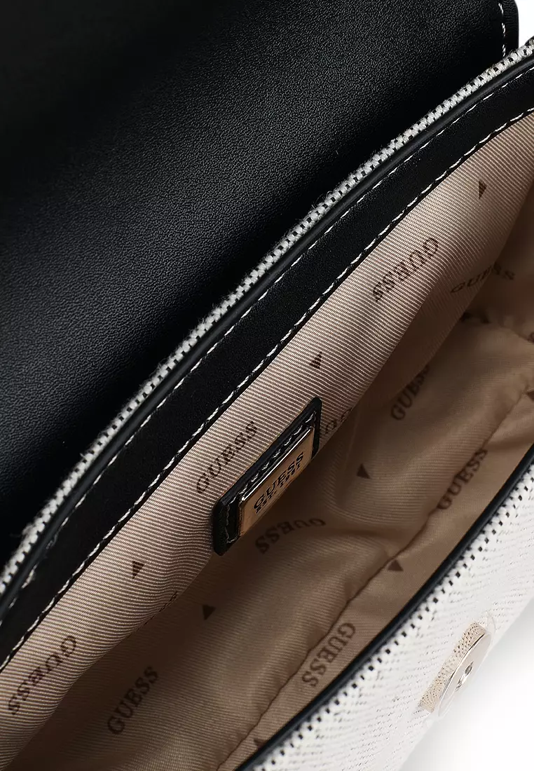 GUESS Umhängetasche Eco Brenton Flap Shoulder Bag Latte Logo