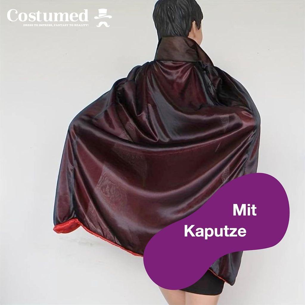 Schwarz-roter Cape Umhang Winwild Vampir-Umhang Mit Kapuze - Rot-Schwarz Doppelseitig Für Halloween & Karneval Amazon Vampir Kostüm