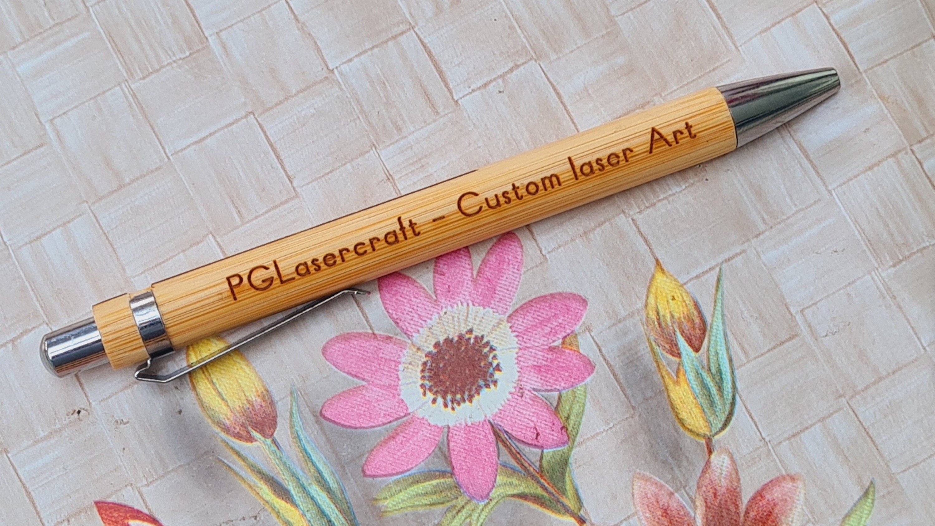 Personalisierter Stift, Umweltfreundlicher Bambusstift, Wählen Sie Ihren Namen Oder Text. Individuell Gravierter Kugelschreiber Aus Holz, Schwarze Tinte, Laserschnitt-Details