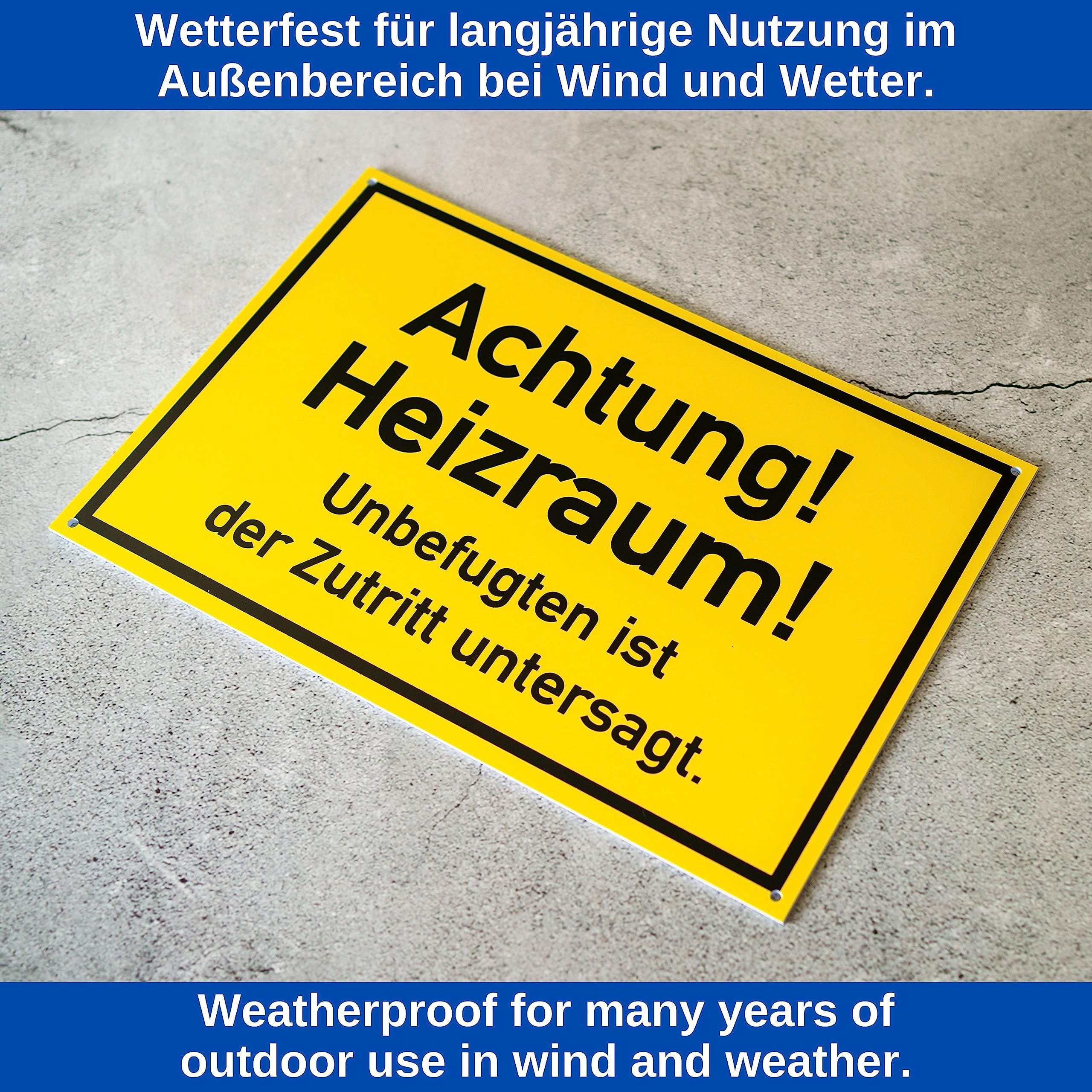 ] Das Heizungsraum kein Zutritt Warnschild kann im gewerblichen sowie privaten Bereich eingesetzt werden. Unbefugten ist der Zutritt untersagt. Egal ob in Außenbereich oder Innenbereich, das Hinweisschild für Heizungskellerräume ist robust, witterungsbeständig und UV-beständig. Heizraum!", 2 Stück, 30 x 20 cm, 1 mm starkes PVC Schild mit Bohrlöchern, Therme Anlage Schild, Hinweisschild Heizung Keller, Heizungsanlage Unbefugten Zutritt verboten Sign Verbotsschild Barfuß laufen ist verboten - Kombination ✅ [HINWEISSCHILD HEIZRAUM BETRETEN VERBOTEN AUS PVC MATERIAL - MATERIALSTÄRKE 1 MM] Das Warnhinweis Schild ist aus Witterungs- und UV beständigem PVC Kunststoff hergestellt und professionell im UV Direktdruck Verfahren bedruckt worden. ✅ [ACHTUNG HEIZUNGSRAUM NICHT BETRETEN SCHILD MIT 30 X 20 CM GRÖSSE] Das Heizungsraum Kellertür Schild ist klar leserlich bedruckt und kann z., B. Schild verfügt über die spezielle Hinweisschild Schrift DIN 1451 und kann zur Montage entweder angeschraubt, aufgehängt oder angeklebt werden. Deine Vorteile auf einen Blick: - Schild für Gas und Heizungsanlagen mit Lochbohrung aus robusten Komponenten - UV-beständig und Witterungsbeständig - PVC Material Schild im Direktdruckverfahren hergestellt - Schutz gegen Ausbleichen - Achtung Betreten verboten Schild aus extra dickem Material - hält jeden Witterungsverhältnissen stand - Infoschild für Kellertür zur Montage auf den meisten Oberflächen - zum Anschrauben, Ankleben, Aufhängen - Hinweisschild mit klar leserlicher Schriftart Mittelschrift DIN 1451 Im Lieferumfang ist Folgendes enthalten: - 2 Stück Betreten untersagt Verbotsschild, keine Schrauben oder Klebepads im Lieferumfang enthalten Das Mieterkeller Heizungsanlage Warnhinweis Schild kann mit geeignetem Klebstoff auf glatte Oberflächen angeklebt werden. Verbotsschild Privatgrundstück Parken verboten, 1 Stück, 30 x 20 c... ✅ [SCHILD FÜR HEIZKELLER TÜR - MIT VIER ENTGRATETEN BOHRLÖCHERN - ZUM ANSCHRAUBEN - AUFHÄNGEN - ANKLEBEN] Das Gasheizung betreten verboten Schild verfügt über 4 Bohrlöcher (ca. , 2 Stück, 30 x 20 cm, 1 mm starkes PVC Schild mit Bohrlöchern, Heizungsanlage Schild, Hinweisschild Heizung Keller, Heizungsanlage Unbefugten Zutritt verboten Sign Dieses Achtung!, Heizraum! Befestigungsmaterial wie Schrauben oder Klebestreifen sind im Lieferumfang nicht enthalten. Parkverbotsschilder Parken Verboten Hinweisschild: Heizraum - Unbefugten Ist Der Zutritt Verboten Betreten Verboten Schild ✅ [LIEFERUMFANG] 2 Stück Betreten untersagt Verbotsschild, keine Schrauben oder Klebepads im Lieferumfang enthalten.