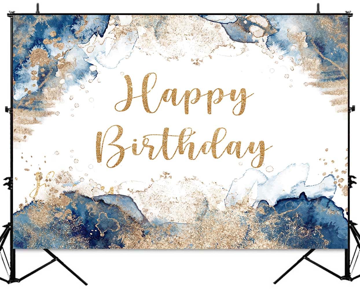 Sensfun Blau Und Gold Happy Birthday Hintergrund Abstrakt Aquarell
