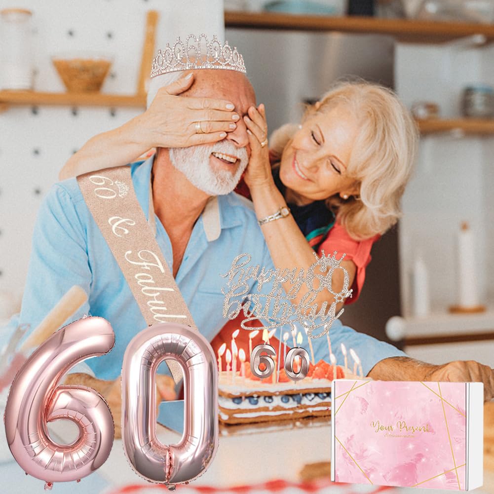 Rosa Tiara Zum 60. Geburtstag, Schärpe Und Krone, 60. Geburtstag, Für Frauen, Geburtstagsgeschenke Für 60. Geburtstag, Partyzubehör, 60. Geburtstag