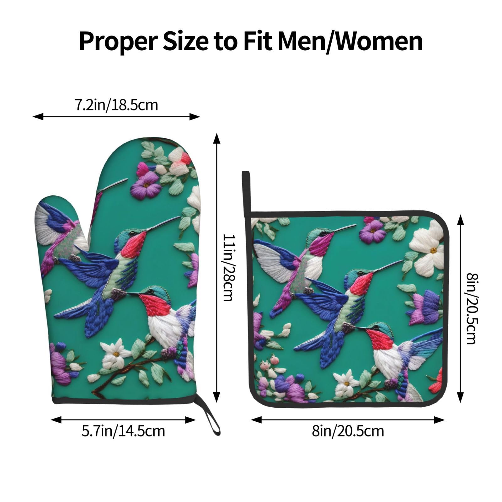 【Anwendbare Szenarien】Hitzebeständige Handschuhe sind ideal für Heimküchen oder Hinterhöfe, wie Kochen, Backen, Grillen, Picknick und Grillen. Hochwertig und langlebig, bietet es Ihnen mehr Komfort beim Kochen, und kann Ihre Finger, Hände und Handgelenke besser vor Verbrennungen schützen. 【Anwendbare Szenarien】Geeignet zum Aufdecken des Deckels in der Küche, Mikrowelle, Ofenendgeschirr und Grillen im Freien usw. Ob Ofenhandschuhe und Topflappen mit Muster oder im Unidesign – als Materialien bieten sich vor allem hitzebeständiges Silikon, klassisches Textil oder robustes Leder an MKCLY Finger Sleeves Protector Silikon Finger Cots Rutschfeste Finger Das weiche gesteppte Baumwollfutter macht es flexibel und bequem für den Gebrauch, macht das Kochen in Ihrer Küche sicherer und bequemer. 【Rutschfester Griff】 Silikon-Ofenhandschuhe bieten ein langlebiges und rutschfestes Griffdesign, das einen sicheren Halt auf Töpfen und Pfannen bietet, gut Ihre Hände und Handgelenke vor Verbrennungen schützen. Größe der Handschuhe: 27,9 x 18,3 cm., Topflappen: 20,3 x 20,3 cm. 【Premium-Material】Hergestellt aus hochwertigem Silikon- und Polyestergewebe, feine Verarbeitung, dick und langlebig, wärmeisolierend. Ein tolles Geschenk für Mutter, Muttertag für Festivals und Einweihungsgeschenke. Verwenden Sie einfach diesen hitzebeständigen Topfhandschuh aus Silikon, um das Risiko schmerzhafter Verbrennungen zu minimieren. Produktvorteile. Hergestellt aus hochwertigem lebensmittelechtem Silikon, das sicher und neutral gegenüber den zubereiteten Speisen ist Notwendige Küchenhelfer oder Zubehör. Die Ofenhandschuhe und heißen Pads sind super hitzebeständig und verhindern, dass der Unterarm durch den heißen Grill im Freien verbrannt wird. 【Einfach zu verstauen】Sowohl Ofenhandschuhe als auch Topflappen sind mit einem Aufhängeschlaufen-Design ausgestattet, einfach zu verstauen nach dem täglichen Gebrauch. Topflappen Mit Silikon Ofenhandschuhe Und Topflappen, Kolibri, Set Mit 4 Rutschfesten Grill Handschuhe Ofenhandschuh mit einzigartigem Muster, tolles Geschenk für Weihnachten, Feiertage, Dinnerpartys, Geburtstage, Gastgeberin, Einweihungsfeier und einen Koch, der gerne kocht.