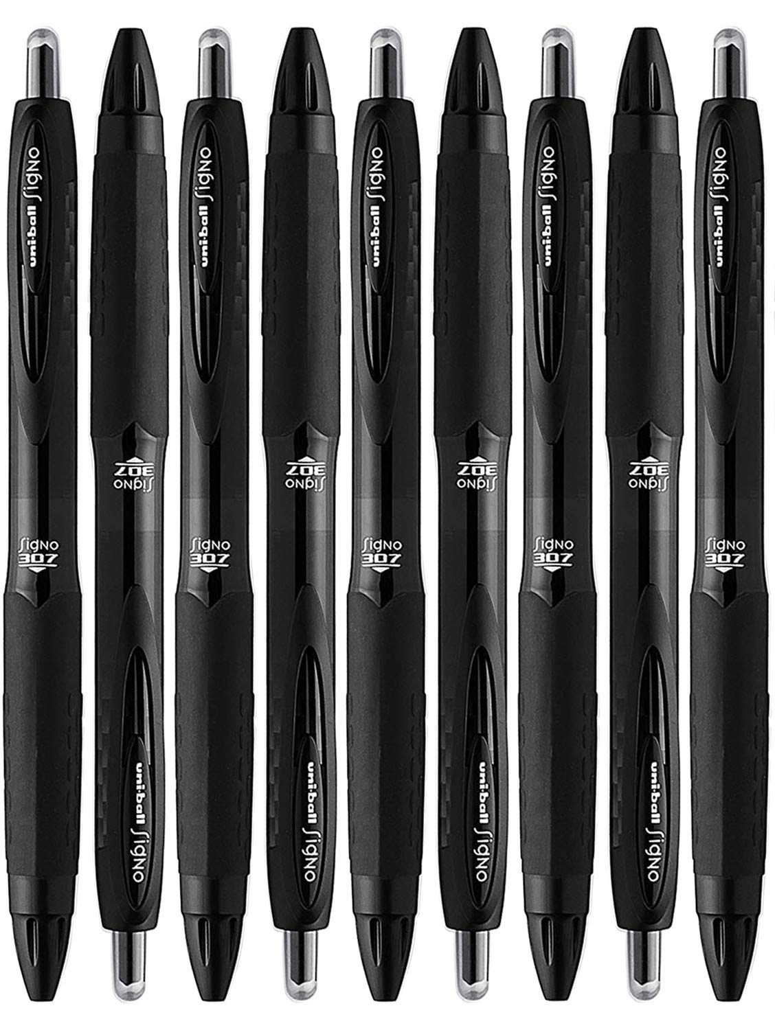 Uni-Ball Signo 307 Medium Point Retractable Rollerball Pens, 9 Pack, Black ( UMN-307