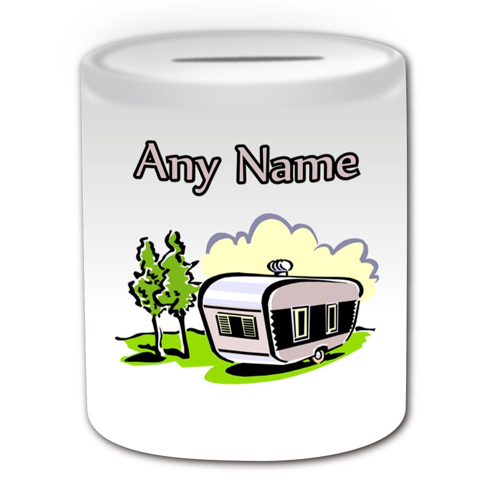 Uni-gift Personalisierte Geschenk-Spardose - Travel Trailer Spardose (Design Thema, Weiß) - Für Jede Nachricht/Name Auf Ihrem Einzigartig - Campervan Van Mobile Wohnmobil Camper Caravan Urlaub
