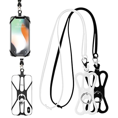 SURPHY Verstellbar Handykette Universal Zum Umhängen, Stabil Trageband Handyband Für Outdoor, Reise, Phone Lanyard Mit Robuste Haken Kompatibel Mit Alle Smartphones Airpods, Rein Schwarz