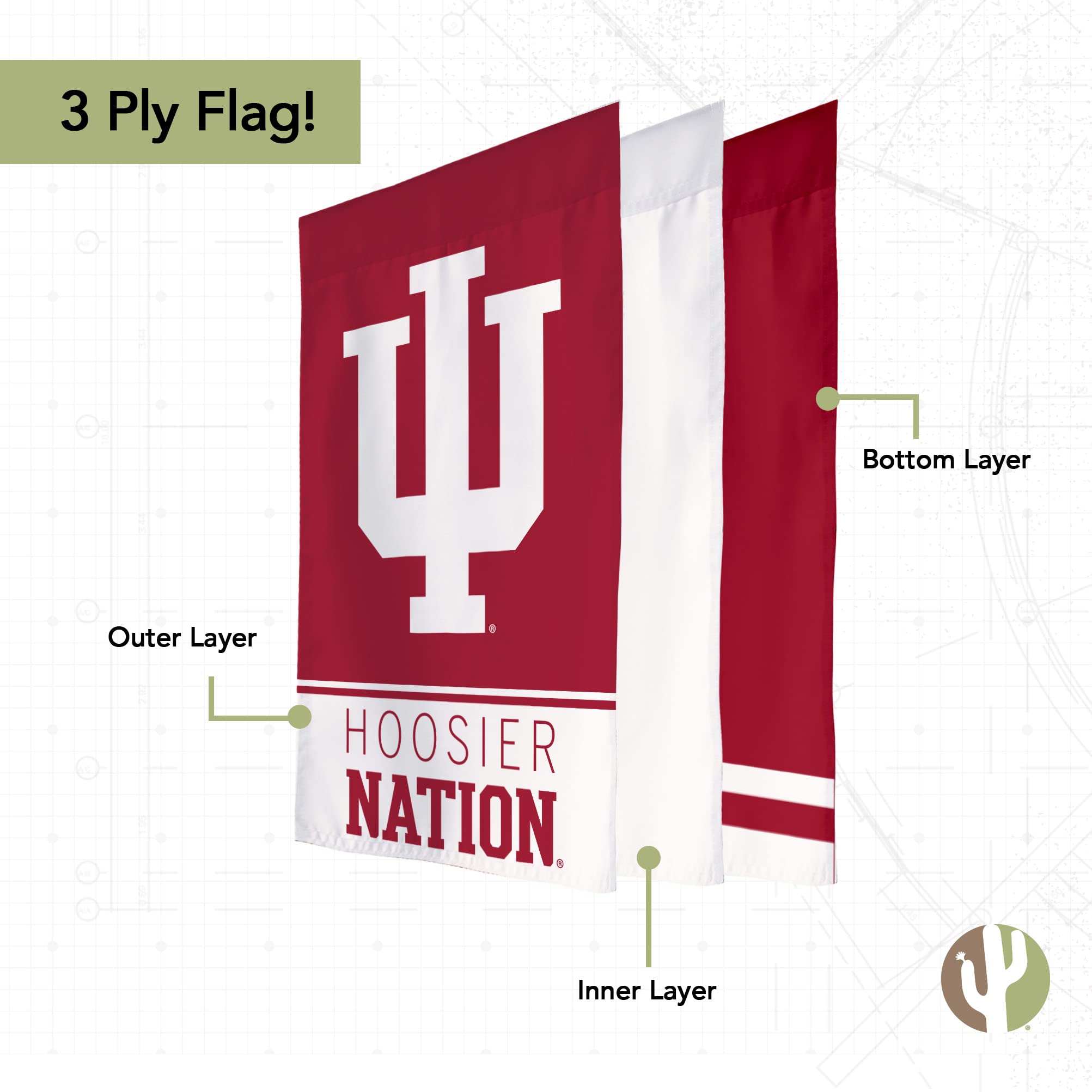 Desert Cactus hält Lizenzvereinbarungen für professionelle Ligen, zahlreiche Hochschulen und Universitäten sowie andere Organisationen. Indiana University Flaggen, Doppelseitige Hoosiers Bloomington Polyester - Unsere Gartenflaggen bestehen aus 100% Polyester Doppelseitig: Unsere Flaggen verfügen über zwei zusammengenähte Flaggen, was bedeutet, dass Sie das Design auf beiden Seiten richtig sehen können Wüstenkaktus – Wir sind ein in Chicago ansässiges zertifiziertes LGBT-Unternehmen.