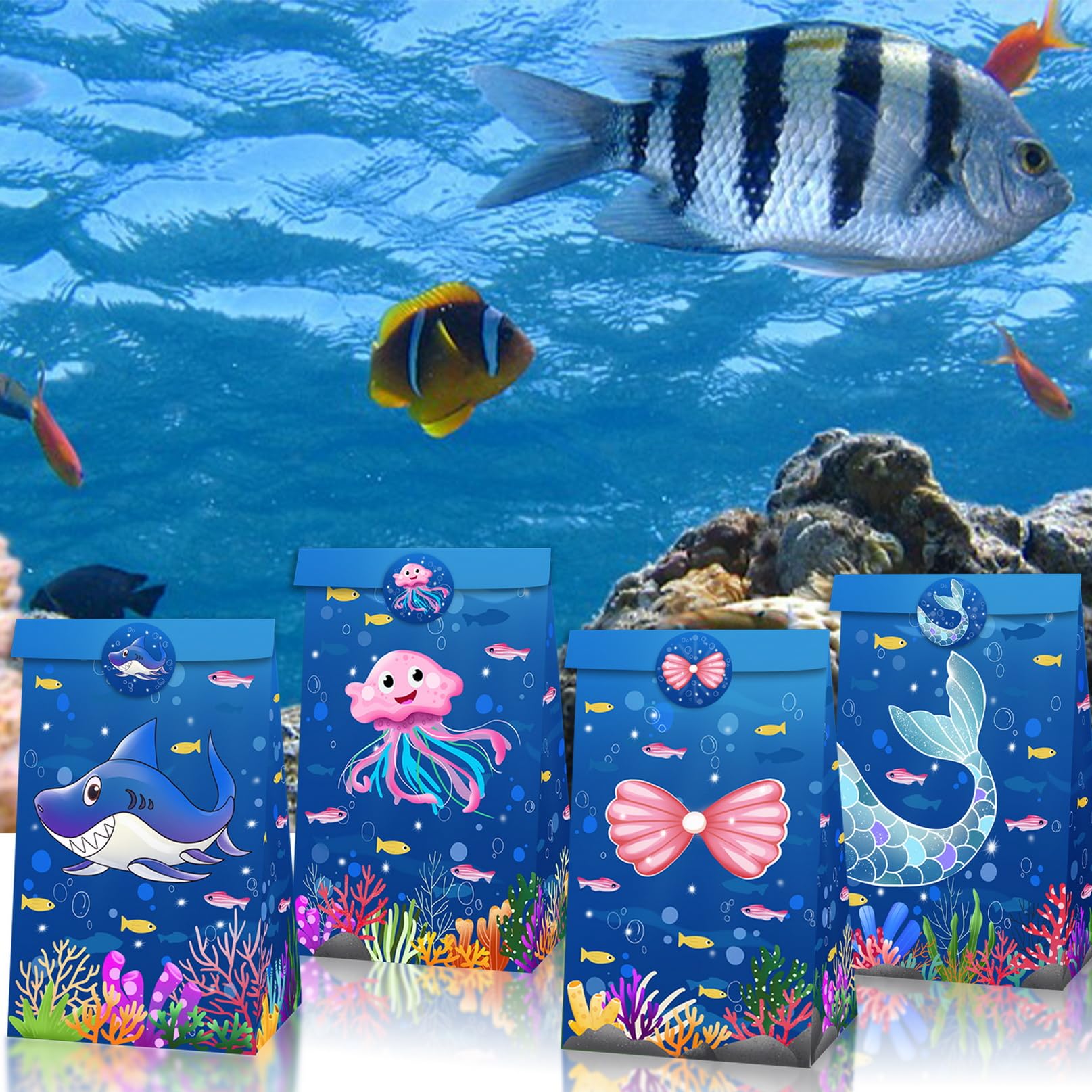Clabby Meereslebewesen Kinder Turnbeutel Ozean Süßigkeiten Party Beutel Unter Dem Meer Gastgeschenk Tüten Mit Kordelzug Blau Meerestier Sportbeutel Für Geburtstag Reise (Ozean,10 X 12 Zoll,undefined