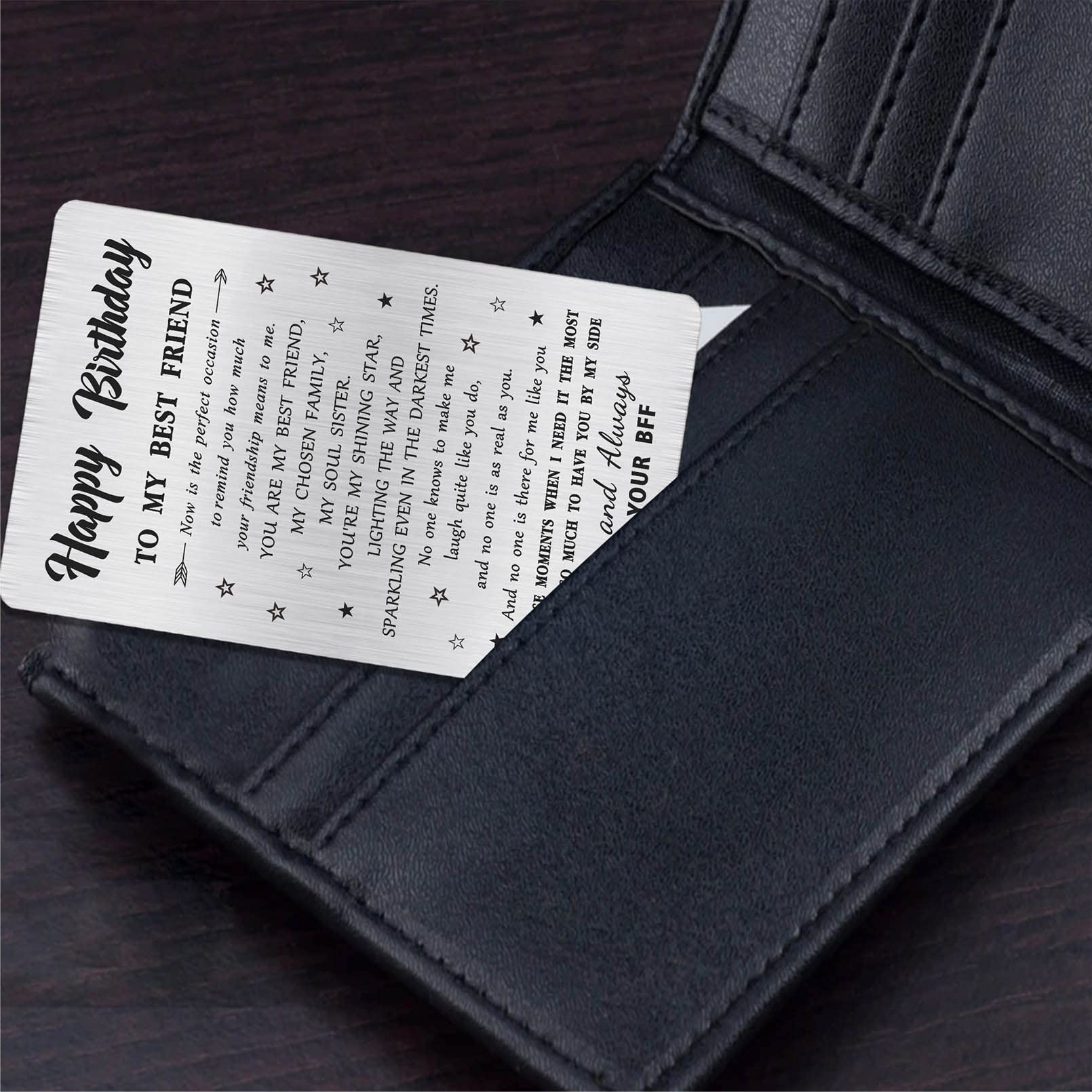 Beste Freundin Geburtstagsgeschenk für Frauen Männer – Happy Birthday, Good Friends are like stars, you don't always see them, but you know they 've always there. 8,5 x 5,4 x 0,1 cm, robust und leicht. Brieftaschenkarte aus Metall – aus Edelstahl, permanente Lasergravur mit sentimentaler Liebesbotschaft, langlebig und klar, kann ein Leben lang aufbewahrt werden Degasken Geburtstagskarte für beste Freundin, Happy Birthday Geschenke für Frauen und Männer, personalisierte Stahl-Brieftaschenkarte günstig auf - Große Auswahl von Top-Marken Seite an Seite oder Meilen auseinander, beste Freunde sind immer nah am Herzen. 8,5 x 5,4 x 0,1 cm, robust und leicht, einfach in jede Brieftasche zu stecken Passt perfekt in jede Brieftasche. Eine Kollegin zum Geburtstag zu gratulieren, kann eine schöne Möglichkeit sein, die Beziehungen am Arbeitsplatz zu… Personalisierte Geschenke für beste Freundin Geburtstag Geburtstagskarte Liebe Pop Up Geburtstagskarte Happy Birthday Geburtstagskarte Pop Up Kuchen Birthday Card Ungefähre Kreditkartengröße., 8,5 x 5,4 x 0,1 cm., Kreditkartengröße ca. Die Besten Hoodies – Die 15 besten Produkte im Vergleich Hergestellt aus Edelstahl, permanente Lasergravur mit sentimentaler Liebesbotschaft, langlebig und deutlich, könnte ein Leben lang halten. Passt perfekt in die Brieftasche: ca. Verpackt mit einem Geburtstagsumschlag. Geschenkidee für beste Freunde. Eine persönliche, liebevoll gestaltete Nachricht kann dabei helfen, besondere Momente zu teilen, eure Freundschaft zu feiern und das Geburtstagskind so richtig zu rühren. Hier sind einige Tipps und Ideen, wie du eine unvergessliche Geburtstagskarte für deine beste Freundin gestalten kannst